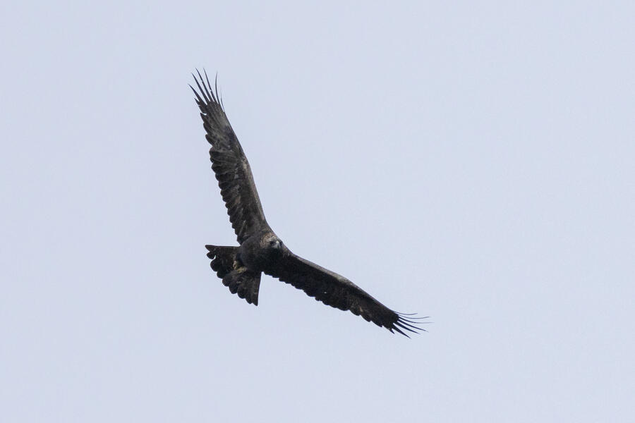 A Golden Eagle was reported near town, and I was able to go out a couple times to look for it. On the first day, I found a handful of Red-tailed Hawks, some Northern Harriers, and a distant Bald Eagle. As I was walking back to the car, I spotted another eagle coming in low... it was mostly a dark bird, perhaps good for Golden Eagle. I only had time to get a few photos before I lost sight of it. Upon reviewing the photos it was a Golden Eagle! I got such a brief look at it I had to go out again to try to see it. Later that afternoon I went to a nearby location and found only a Bald Eagle.
