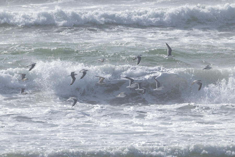 Short-billed GullI had looked ahead of time and knew there had been Short-billed Gulls seen often at this part of the Oregon coast. As I was heading toward the car I saw a group of gulls going by and took some photos. Sure enough, they were Short-billed Gulls with large white mirror spots on outer primaries, very small unmarked bills, and dark eyes. Those field marks all rule out Ring-billed, which is probably the most similar species they could have been. I don't see Short-billed that often so I'm happy to have taken these photos.