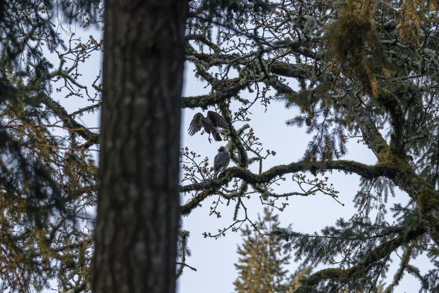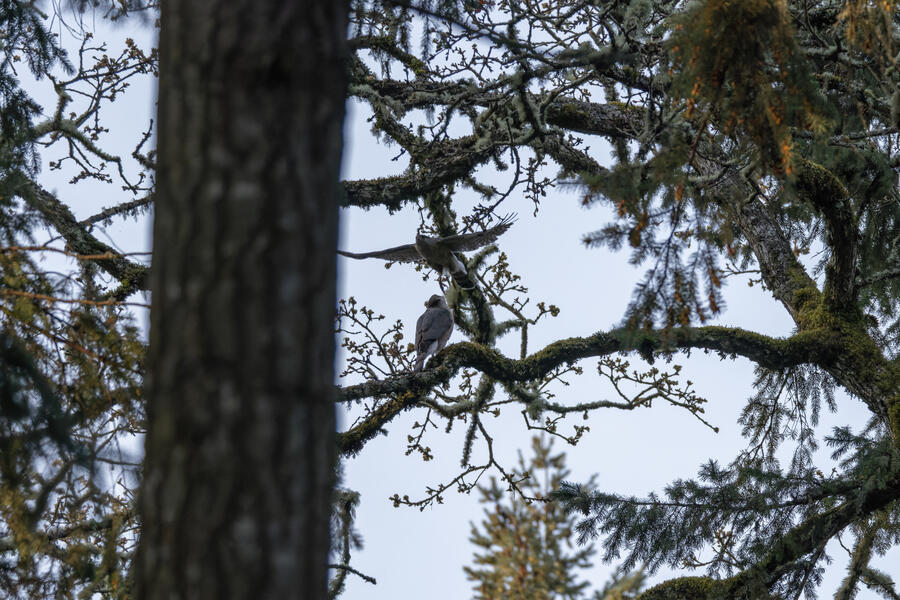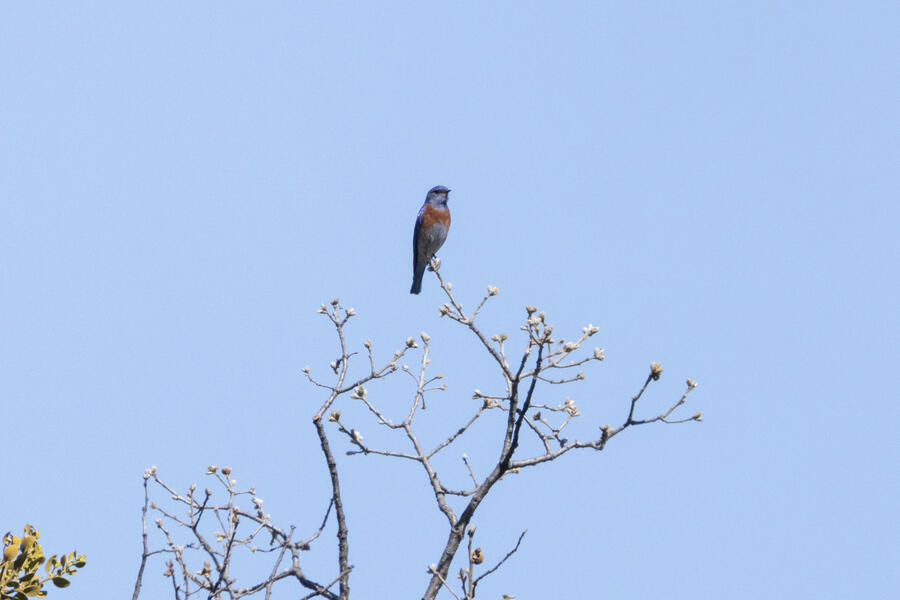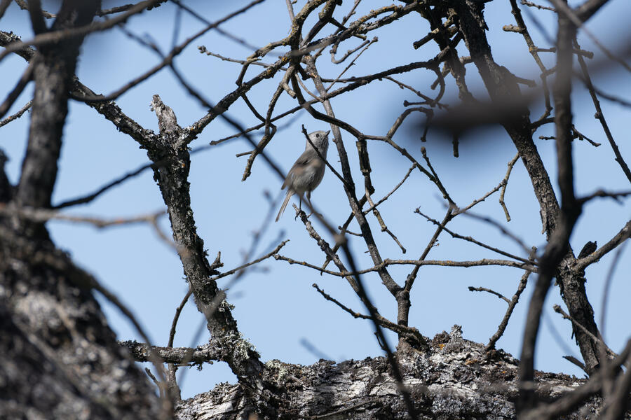 Toward the end of March we made short trips to the north and south ends of Oregon. On our second trip to the south, I got a chance to go out and find my lifer Oak Titmouse, which I'm happy to have found in Oregon (they're much more widespread in California). It wasn't easy to find this bird — I spent a while out wandering around, hearing it occasionally, and had given up and was walking to the car when I finally spotted a pair. I followed it from tree to tree for a few minutes and got some photos, so I feel super fortunate for that.