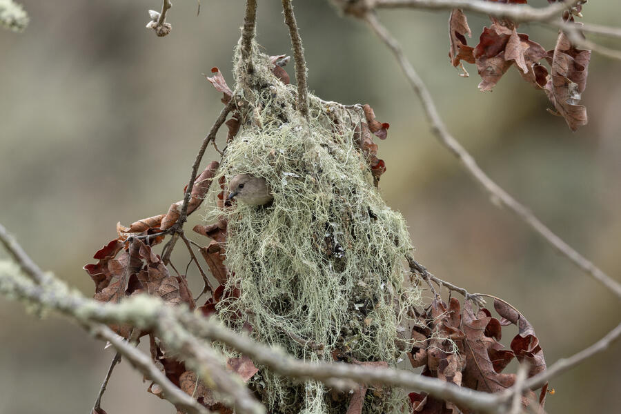 BushtitThis pair of Bushtits was making repeated trips into their hanging nest. I appreciate them for making nests that are so easy to spot (when they're right next to the trail)!