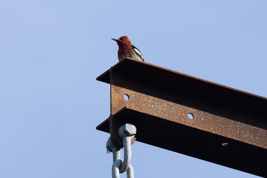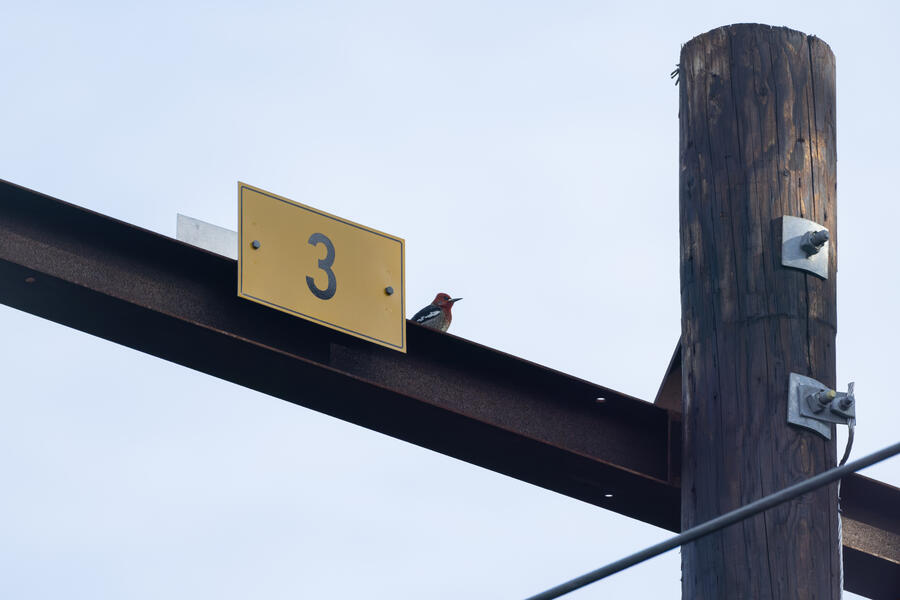 Red-breasted SapsuckerThis likely male Sapsucker was drumming on the metal beam on the power poles.