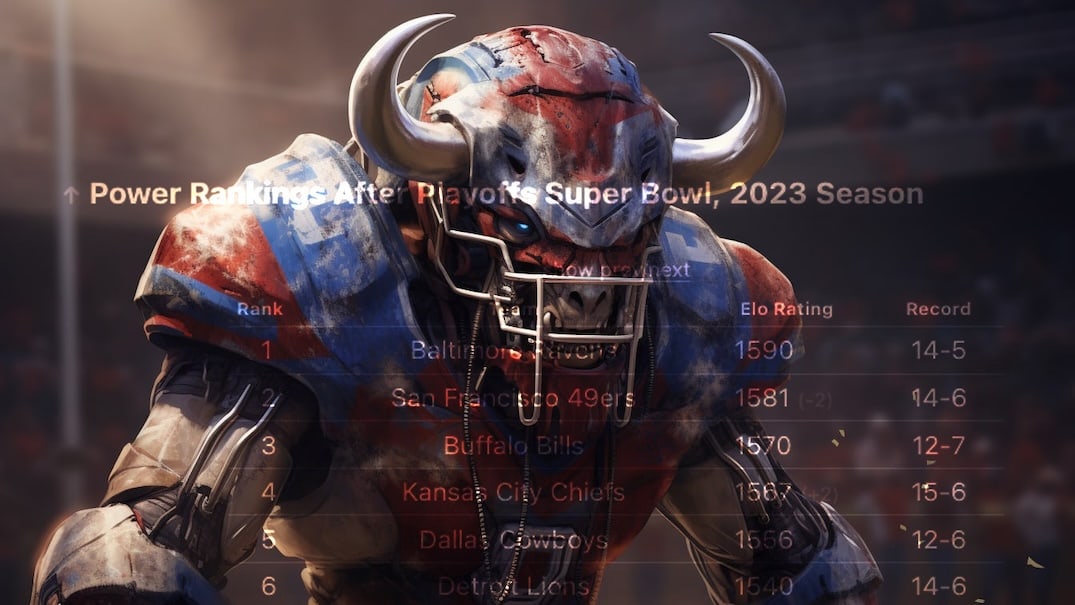 NFL power rankings based on Elo ratings.