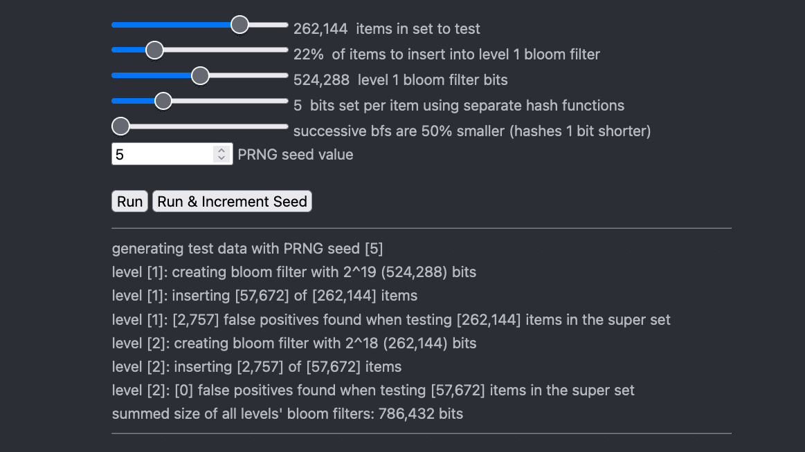 A JavaScript app for playing with cascading bloom filters.