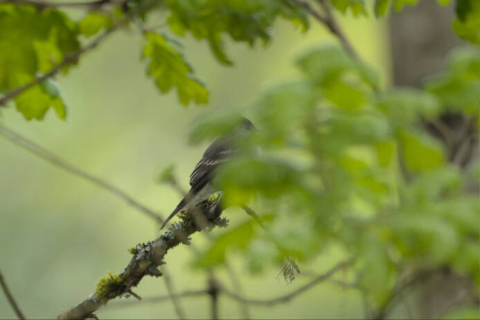 I got three new yard birds: Western Wood-Pewee, and Pacific-slope Flycatcher, and Yellow Warbler. I don't think I'll ever get three new yard birds in the same gallery again!