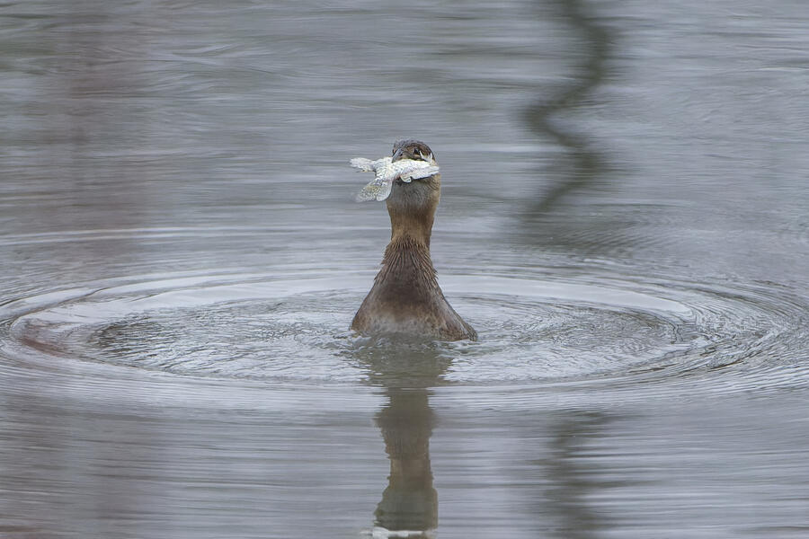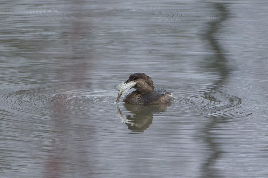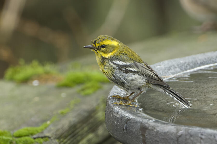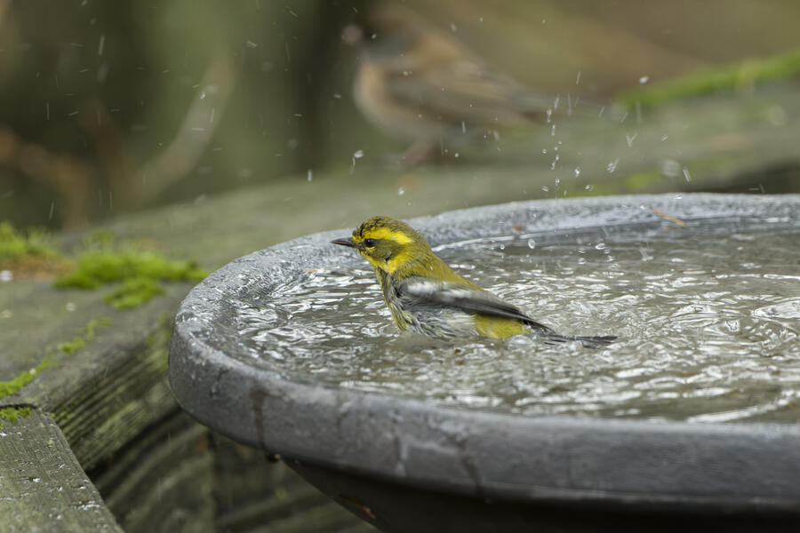 I also got some fun shots of a Townsend's Warbler using the birdbath, and a Pied-billed Grebe trying to swallow a relatively large fish.