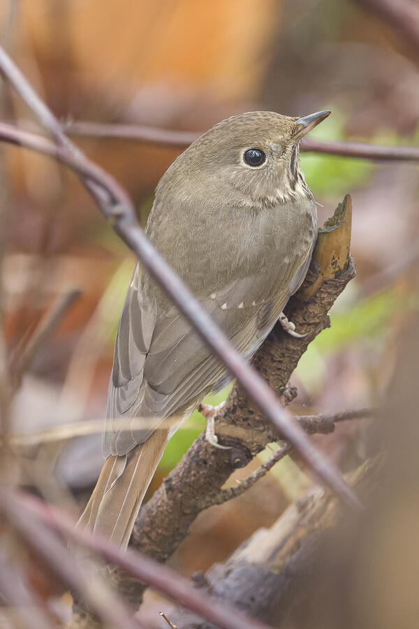 It was a cold, foggy morning for birding. Most of the birds I saw were Kinglets and Chickadees. Toward the end of the outing, when the sunlight was beginning to strengthen, I had a close encounter with a Hermit Thrush next to the trail. I stood still and quiet for a few minutes to avoid spooking it. There was also a Wild Turkey