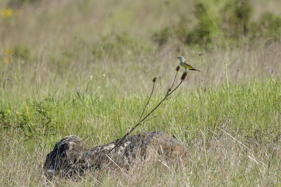 I went out again looking for Blue-gray Gnatcatchers. This time I went to a location where they'd actually been recently seen, and have been in years past. I didn't see any, but got to watch a Western Kingbird, a new lifer, hunt for a few minutes. We're in the middle of a heat wave here so I couldn't stay out as long as I wanted, and I think the birds were also less active than usual. But it was great to see a Kingbird.