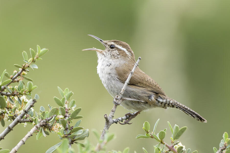 Finally I crept to where it sounded very very close. Then I saw it in a low bushy area. It was moving from the top of one tree or bush to the top of another, singing loudly the whole time.