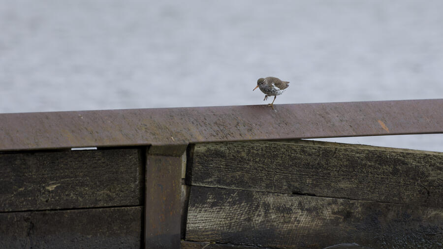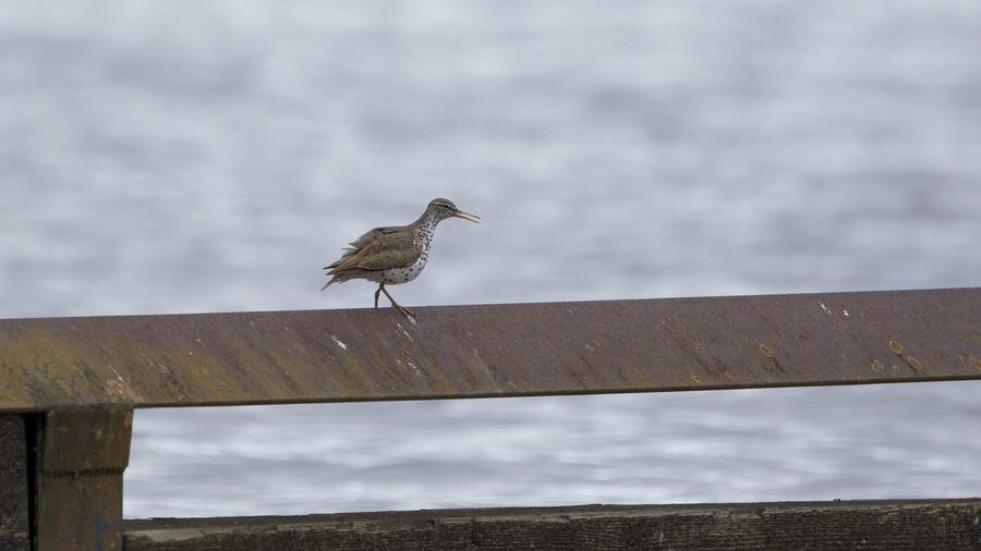 I had a pleasant morning walk at a local lake. I didn't see anything terribly noteworthy. The water was quite high but there were very few water fowl out and about; just a few far-off grebes. I did however really enjoy photographing a Spotted Sandpiper. I photographed one on March 1st in winter plumage, and here 12 weeks later this one was in full breeding plumage.