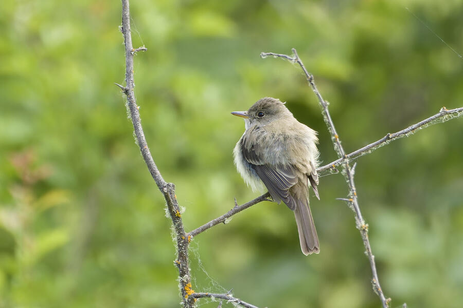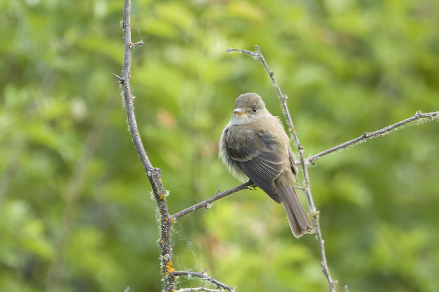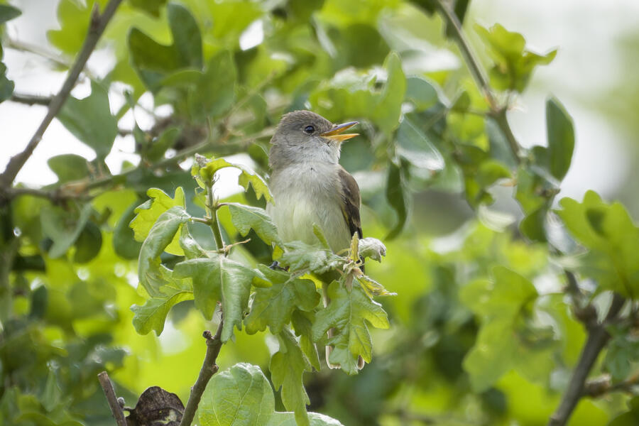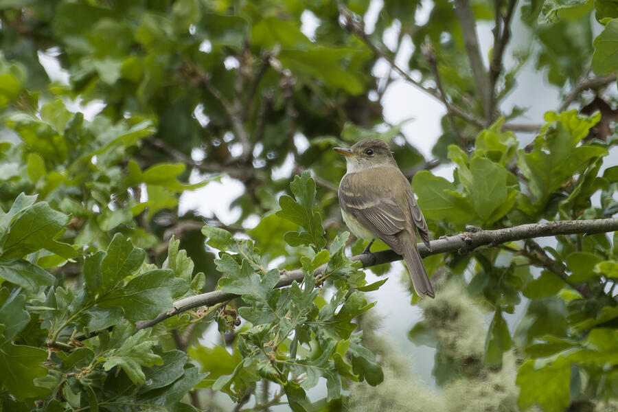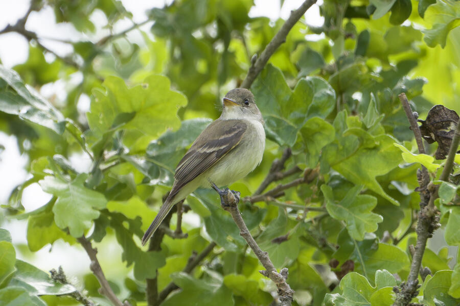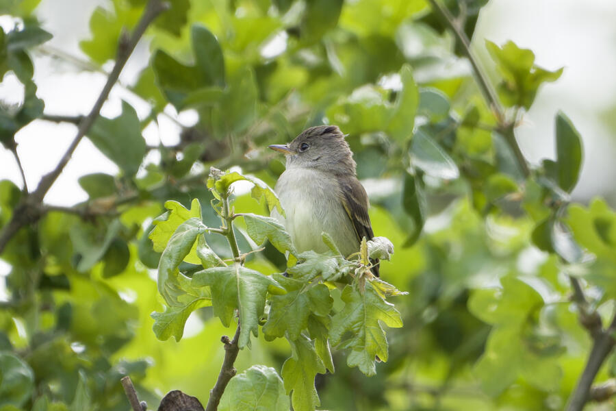 I saw that Willow Flycatcher had been sighted recently in my county, but I decided to instead try once more for Blue-gray Gnatcatcher (and it would be cool to see the Yellow-breasted Chat again, too). When I was approaching the last bit of trail heading toward the car, the Merlin Sound ID feature identified a Willow Flycatcher sound. I waited there for a few minutes and didn't hear it again, so I figured the bird may have been nearby on a neighboring trail I hadn't taken yet in my previous two visits to this location. As I started walking that trail, Merlin heard the bird again. I was getting closer! I used the app to play the Willow Flycatcher song (just quietly, to myself) so I would recognize it. Luckily the bird was singing and moving around, and I found it relatively easily after a short hunt just a few hundred feet down that next trail. I was able to snap a few photos and followed the bird around for a while. It never gave me a terrific photo opportunity but it was fun to hunt the lifer down! This flycatcher didn't look different from the other species I've seen recently, but that's the hallmark of flycatchers: the song is how they're best idenfitied. I am now 3-for-3 in my visits to this location for seeing new lifers!
