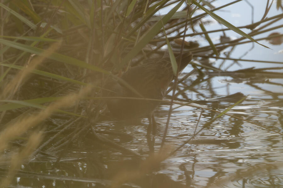 I then went out to the wetlands with a couple targets in mind, including a couple rare sparrows, phalaropes, and Virginia Rail. I've done a little research on spotting Virginia Rail, and this seemed like a good time of year to try to see one. The wetland is drying up at this point in the summer so I thought they might have to venture out of the cover of the reeds to feed. And there could be some young less-secretive rails running around.