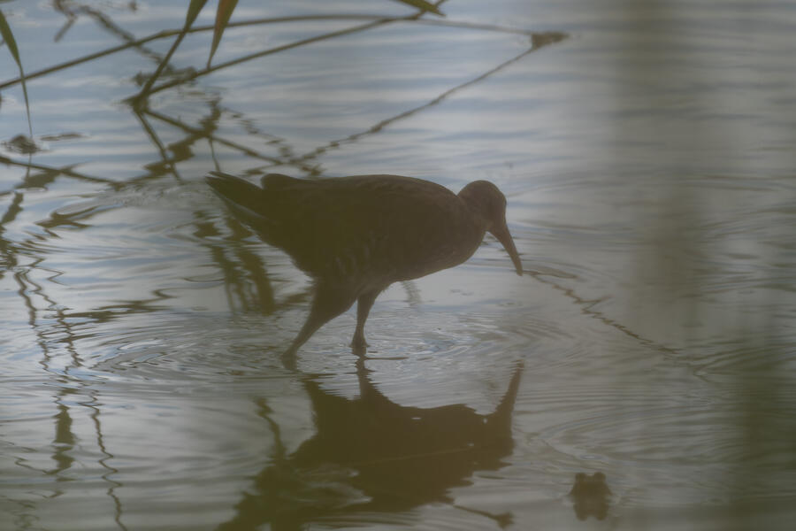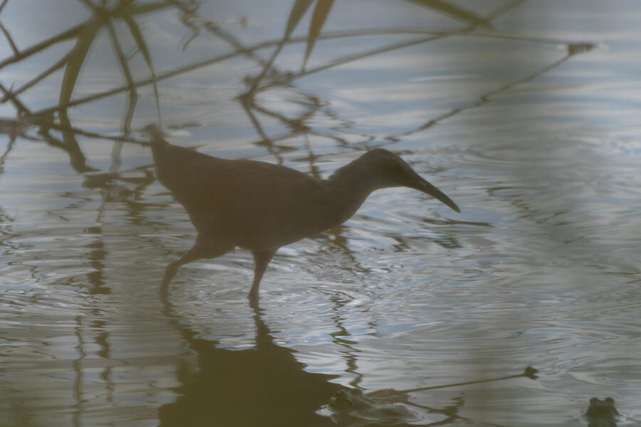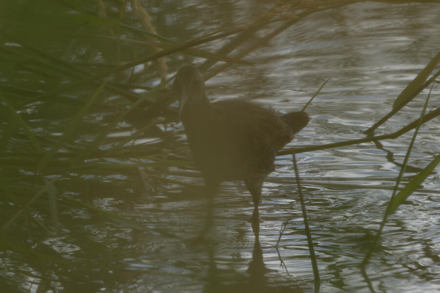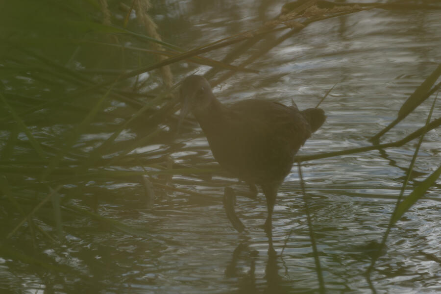 On this outing I caught my first-ever glimpse of a Virginia Rail when one flew from one area of reeds to another. I only saw it for about a second but it was entirely dark — a juvenile. A little while later, while standing still near an isolated patch of water, I saw another couple of rails. I had to photograph them through some grasses and reeds, using manual focusing, but I managed to get a few photos! Finally!