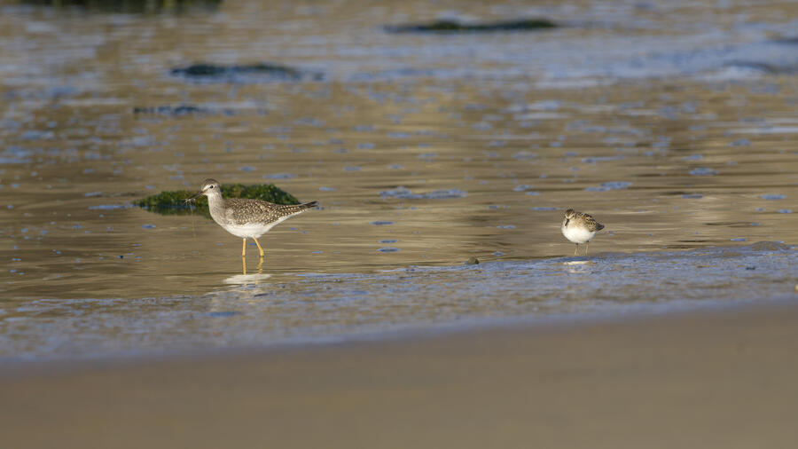Least Sandpiper, Greater YellowlegsI expended this image with the Photoshop Beta "generative fill" feature, and it worked great.
