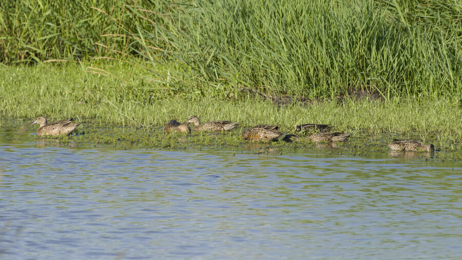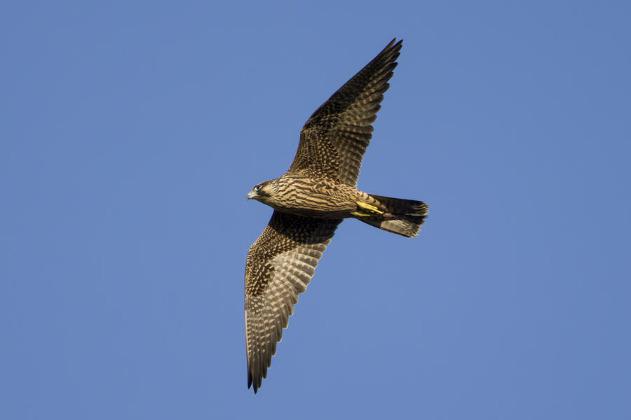 On this recent birding walk I photographed a few unusual sights. I watched a Green Heron land in a small tree, and take off flying again soon afterward. I also saw a pair of Peregrine Falcons flying around. They had relatively quick wing beats, and pointy wings, so I knew they were somewhat unusual. At least one of them, which I photographed, was a juvenile. I also took some bad photos of an immature Pied-billed Grebe actually taking flight. I don't think I've ever seen a grebe flying before!