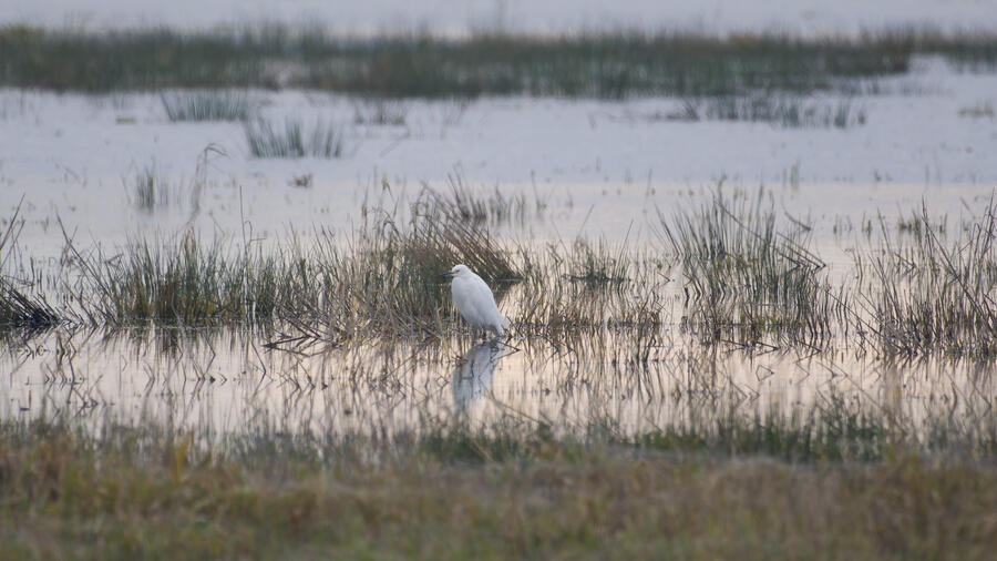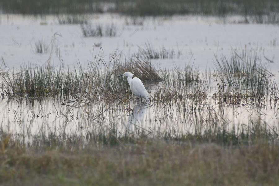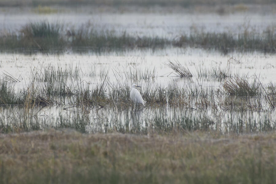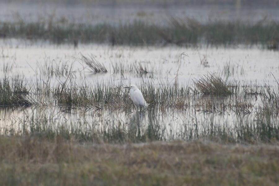 I also made a few trips out to look for more rare birds, and I was successful on one outing: I saw my lifer Snowy Egret! It was another gray overcast day, and down at the wetlands there was lots of standing water everywhere reflecting the nearly white sky. So it was nearly impossible to see the little white egret. Thanks to some folks who had already found it, I was able to get some photos and a look through my binoculars. The egrets and herons in the area are usually pretty flightly, so I didn't want to get very close to it, but it was still really cool to see such a rare visitor.
