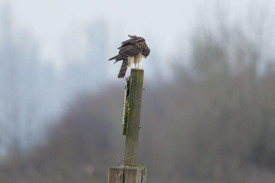 Northern Harrier, Red-tailed HawkAt one point I took a detour to get closer to the hawk that ended up perched in this tree. I was hoping it was a Rough-legged Hawk, but it was just a Red-tailed.