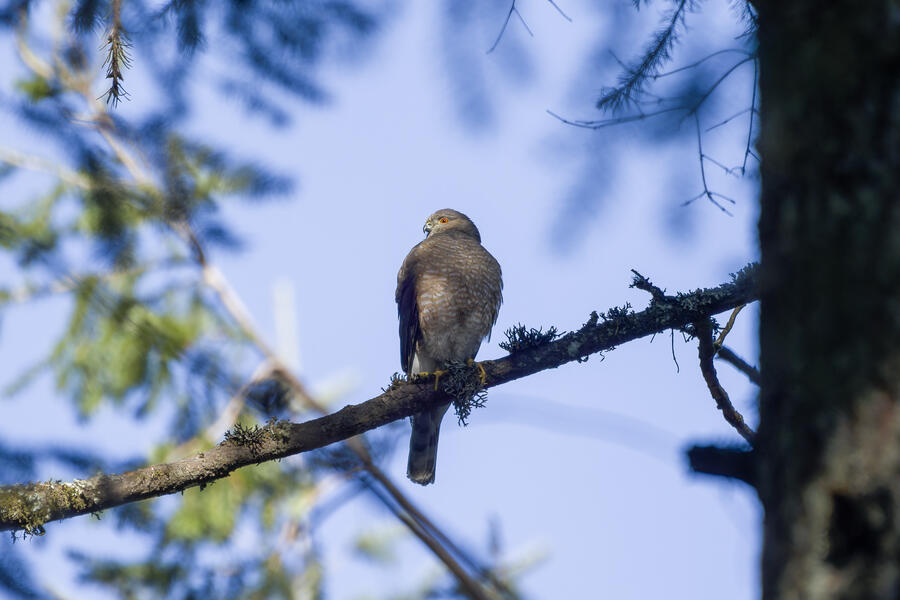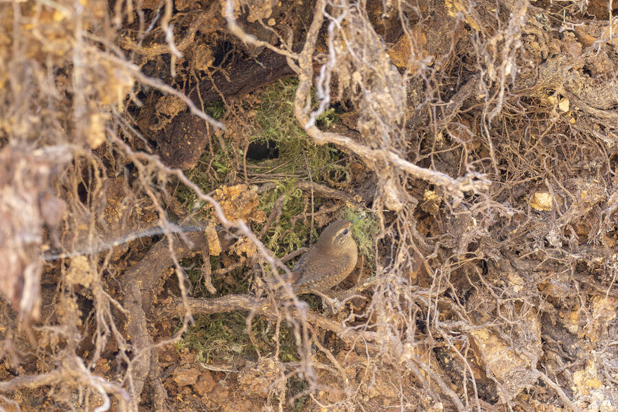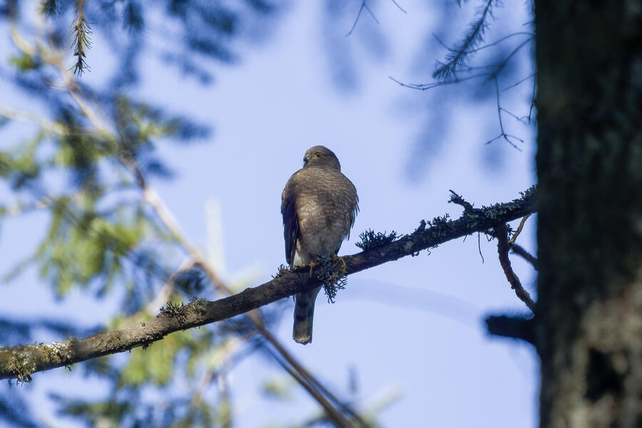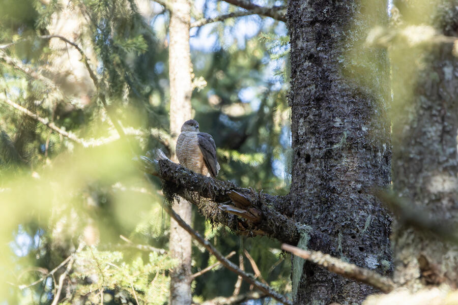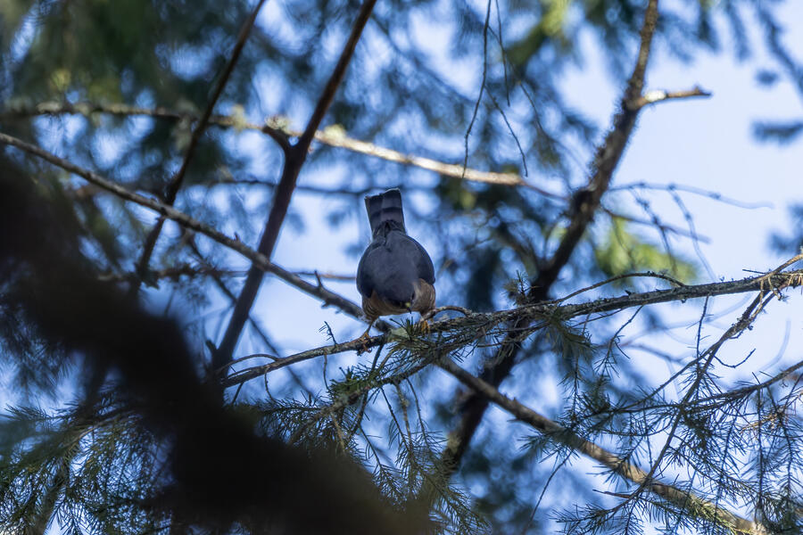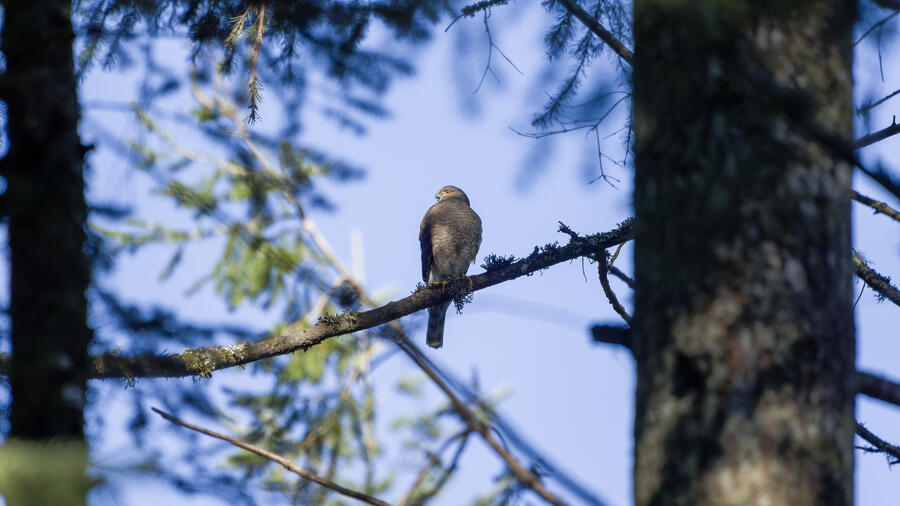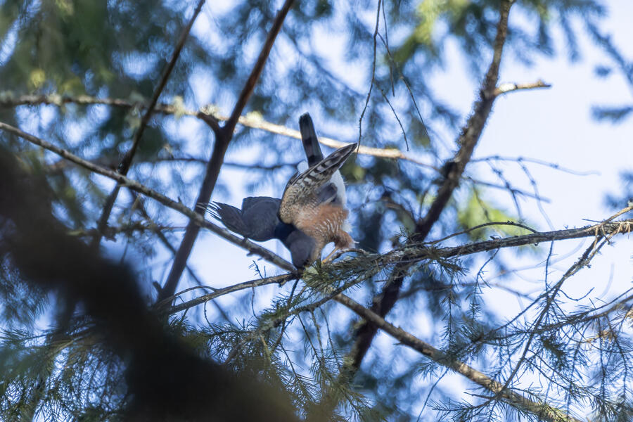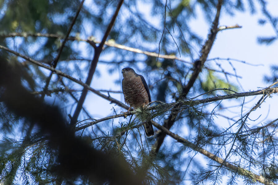 I watched a Pacific Wren building a nest among the upturned roots of a fallen tree. This is apparently a common practice for some populations of PNW Pacific Wrens. It was a quiet walk in the woods otherwise, with another highlight being a pair of Sharp-shinned Hawks.