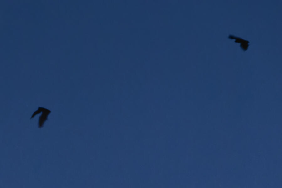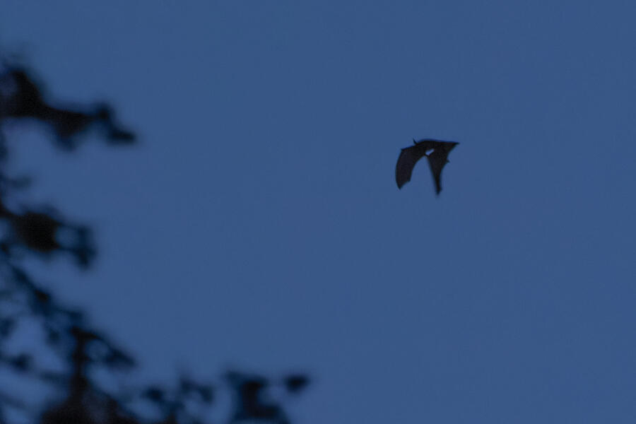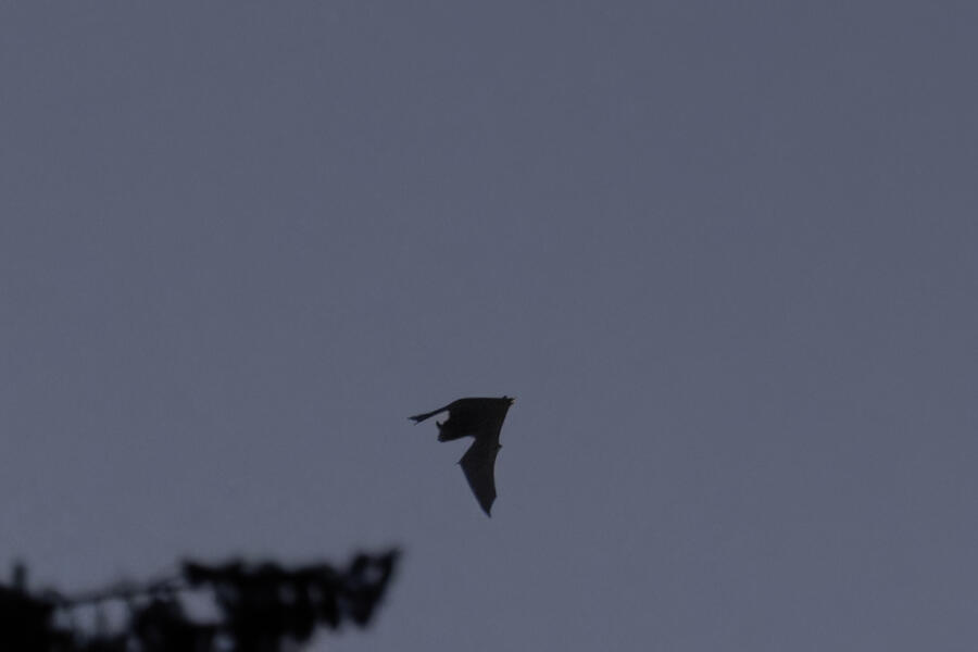 At dusk, I tried to photograph the bats I've seeb flying above our house. I had to use manual focus and managed to get some decent shots. There was almost no light, and these photos have been greatly enhanced by DxO PureRAW. Still fun to try to get a picture of these guys! I think this is a Little Brown Myotis, because they were flying erratically. There were at least three of them that I saw.