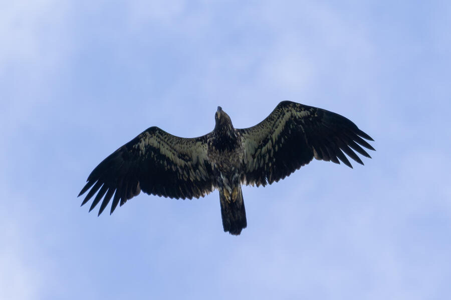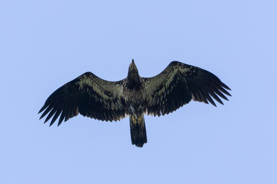 Bald EagleThere were strong winds on this day down at the wetlands, and this young Bald Eagle was soaring in circles above. At one point it got pretty low and slowly floated directly above my head. I had to shoot straight up to get this shot!