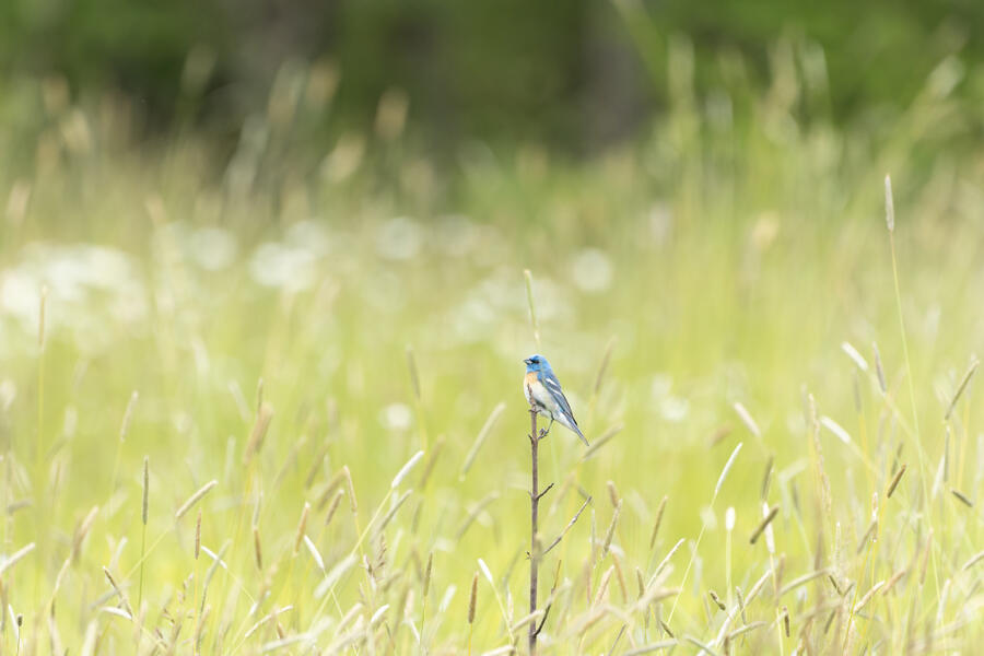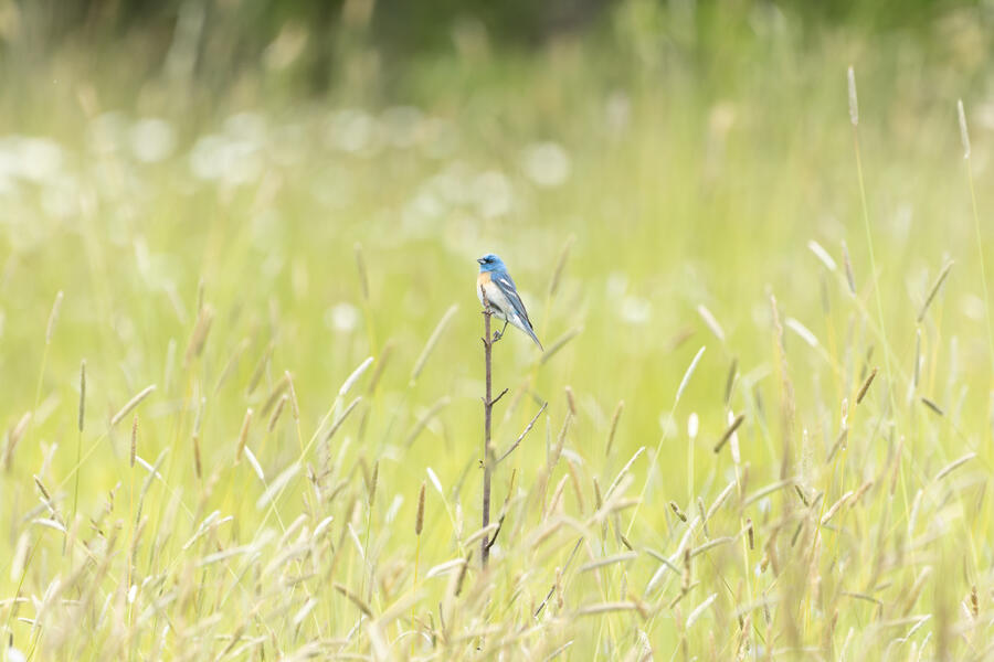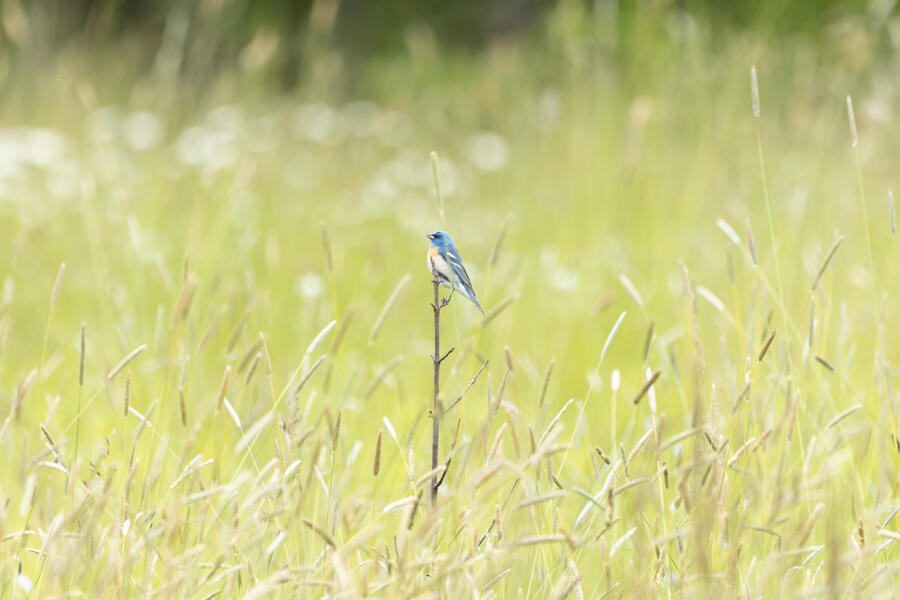 Lazuli BuntingThis is one shot that very nearly worked, but there is a tall distracting grass stem in the foreground.