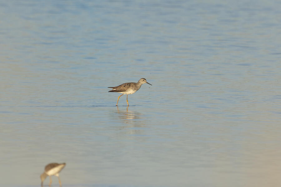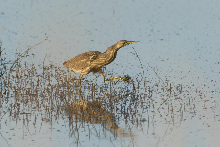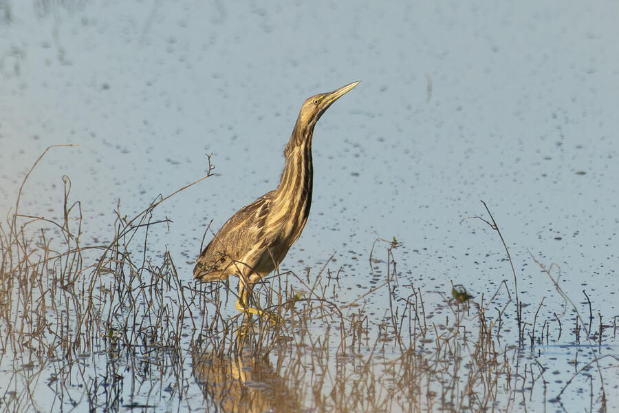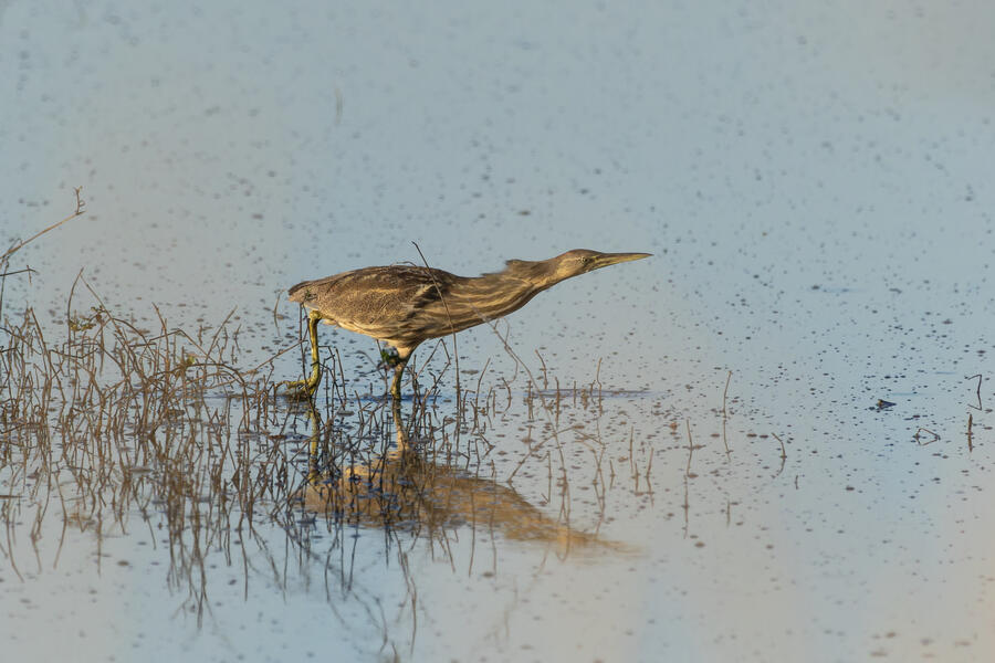 Wilson's Phalarope was my target on my next visit... (no luck). Upon arriving quite early in the morning I was able to photograph a male California Quail out of the car window. I'd seen him perched up high on a few recent visits, but this time he stool still in the golden-hour light and didn't flinch until I had to open the car door to get out. Soon afterwards I saw a bunch of small sparrows on the gravel path, and stopped to photograph one that looked quite plain. It appears to have been a lifer Brewer's Sparrow! Pretty cool, and I'm glad I noticed it looked a bit different, but I wish I got a better look at it. I also got some photographs of an American Bittern standing right out in the open, which they almost never do.