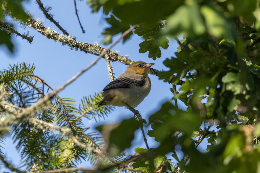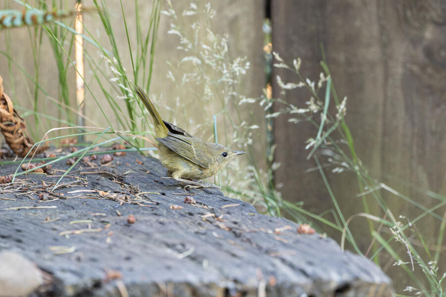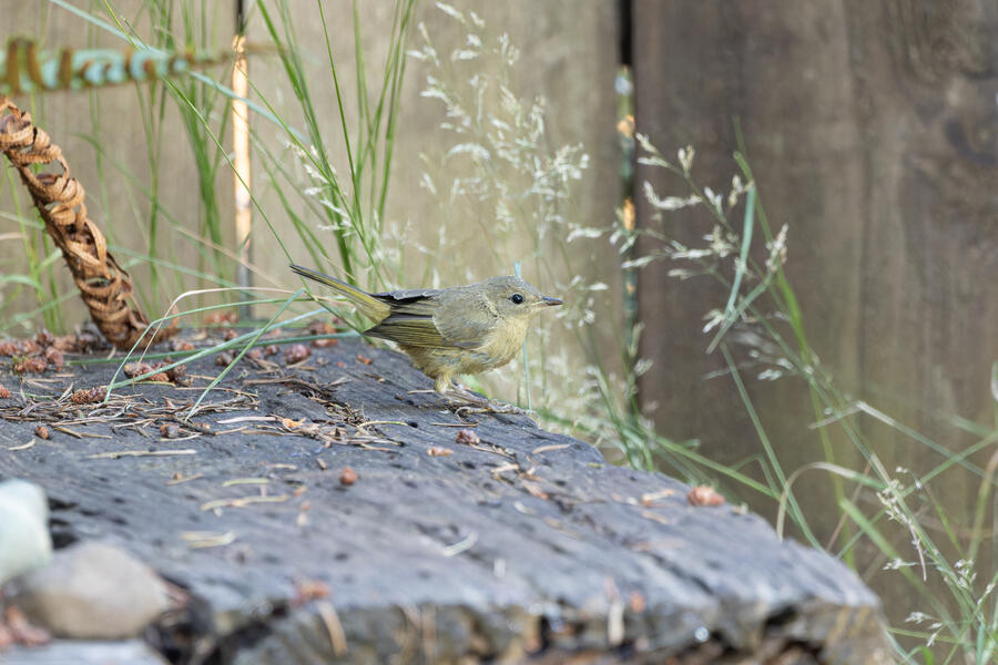 A new yard bird starts off this gallery: Common Yellowthroat. This one was making a familiar low buzzing noise, so I went and grabbed my camera. It appeared to be a young one, who perhaps somehow ended up in the wrong place! I've seen plenty of these birds around here but never in a residential area. This one stayed hidden pretty well in our garden, and was only briefly visible when it moved out from under one plant to another. After waiting for a few minutes it finally made a brief appearance before flying away. It did return to the yard a short while later. A pretty cool yard bird!