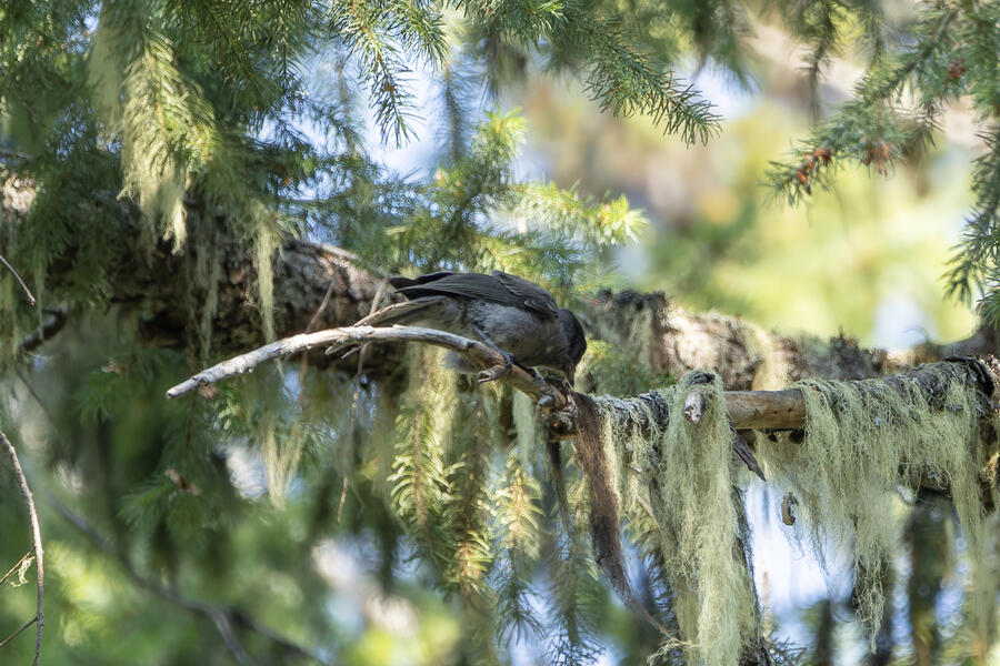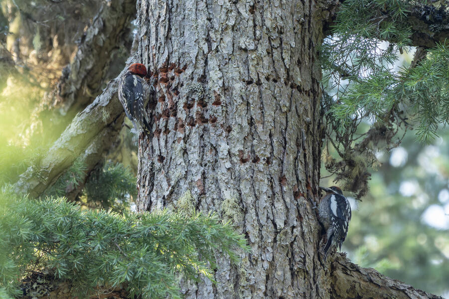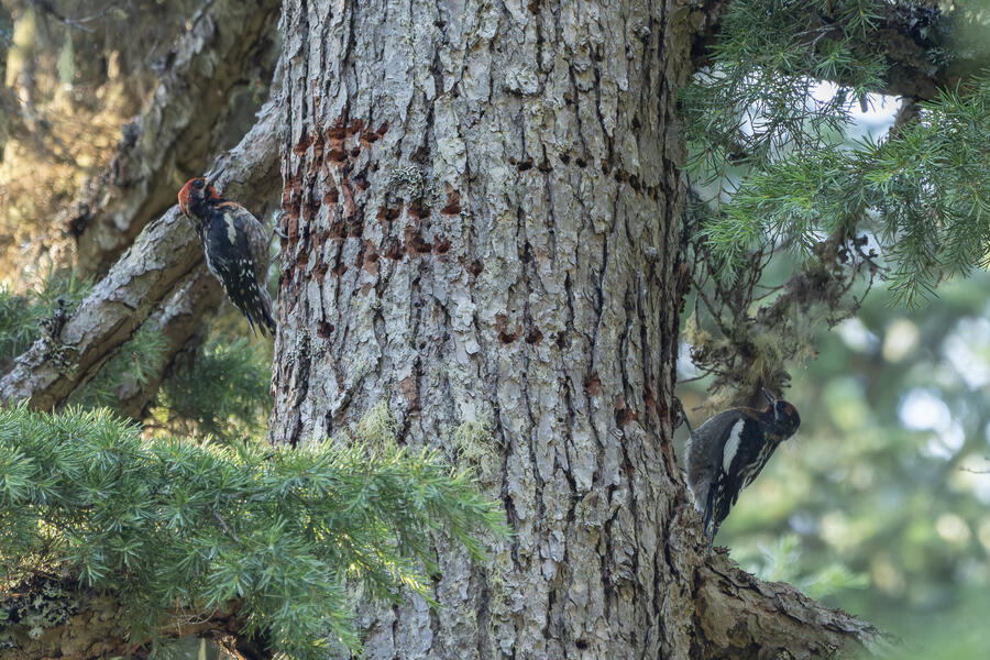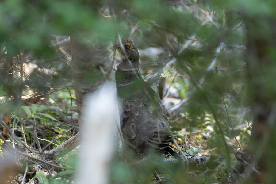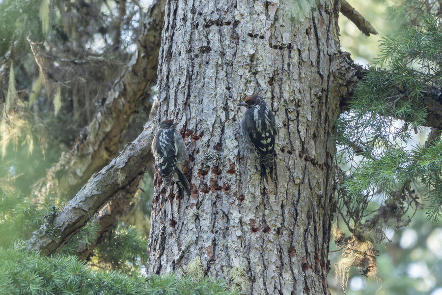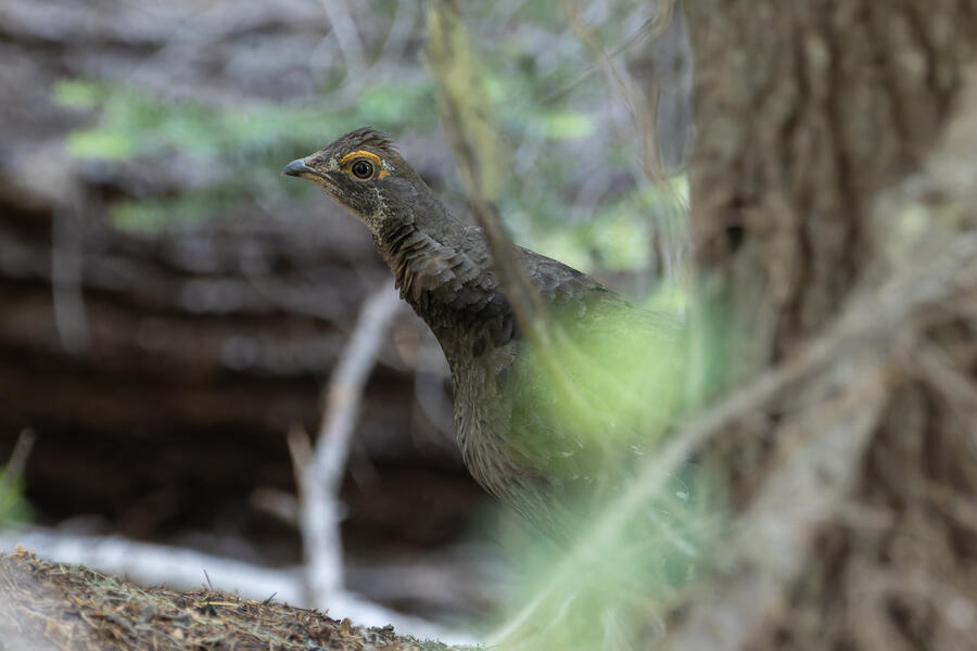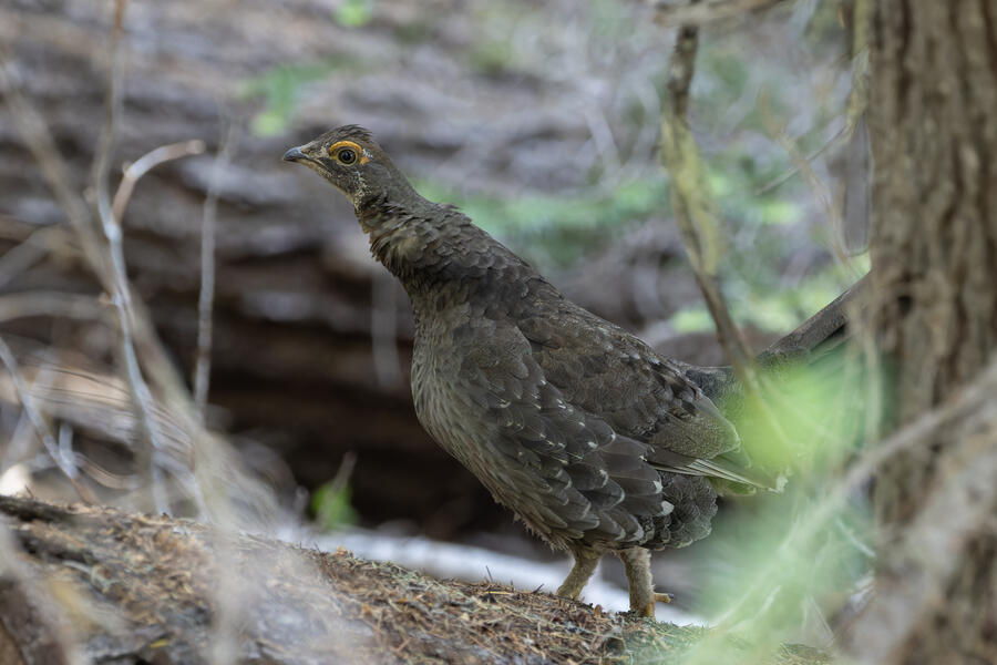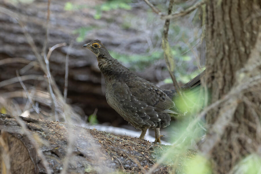 On a nice quiet walk up at elevation I got two lifers: Sooty Grouse and American Three-toed Woodpecker. There wasn't a whole lot of obvious bird activity, but I walked really slowly and took plenty of time to listen. The first interesting birds I saw were some Sapsuckers. They appear to be some sort of hybrid Red-breasted/Red-naped Sapsuckers, which I think are somewhat common in this part of Oregon. 45 minutes later, I had stopped to listen to something else when I thought I heard a low grunt nearby. After a few more minutes I then a heard a very loud, low sound like a large heavy log hitting the ground. I thought it was either a Sooty Grouse or a bear!? I stayed silent for a while and kept my eye on the vegetation on the side of the path. I eventually spotted a Sooty Grouse! It was surprisingly large, and I had to zoom out a bit with my lens to fit it all in the frame. After a while it cautiously crept up toward the path, and suddenly flew away. I was luckily able to get a few photos.