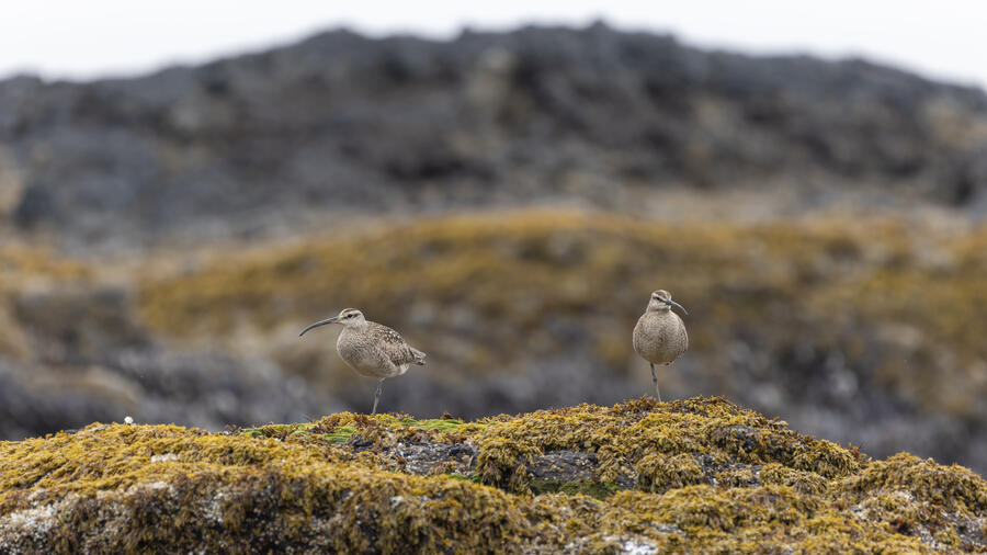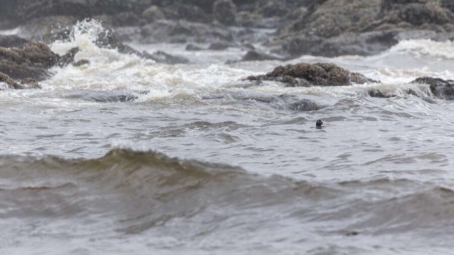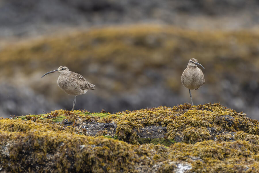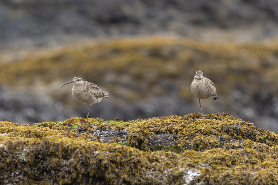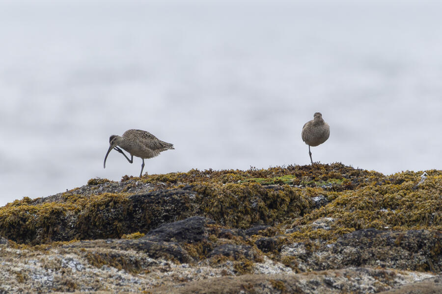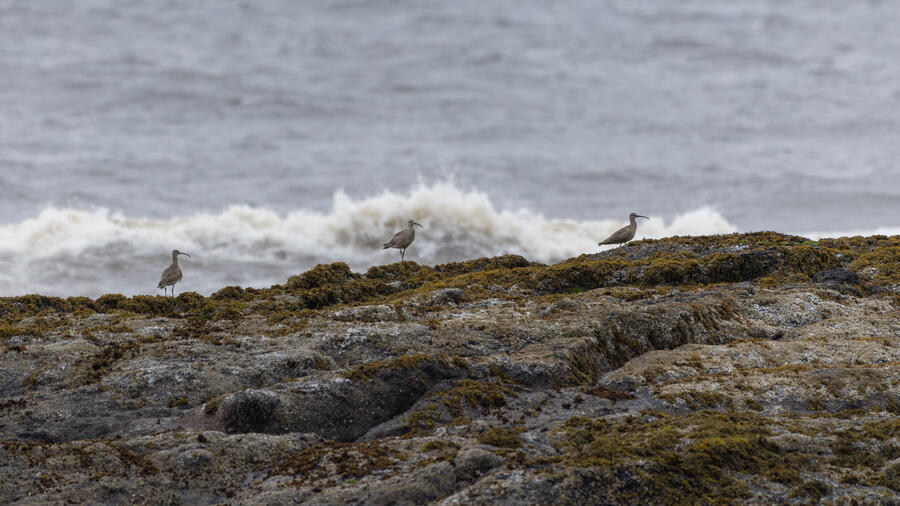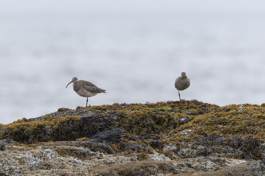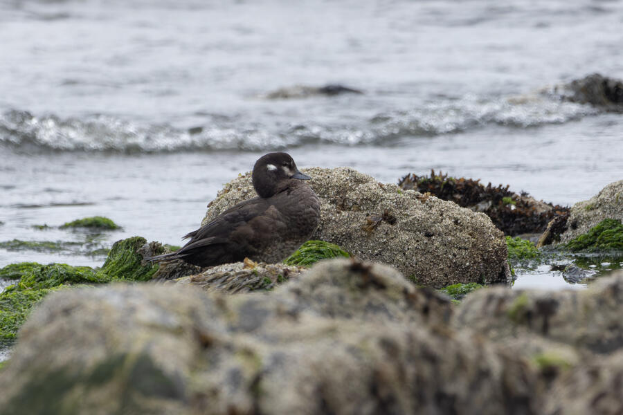 I then drove to a nearby spot on the coast and saw my first-ever stationary Whimbrels. All the other ones I've seen had been flying by, so it was a treat to watch them for a while. I also watched some Scoters diving among the waves, and I got some pictures of the scene I'm pretty happy with. I noticed what appeared to be two females on the rocks, so I snapped some shots of them. They turned out to be female Harlequin Ducks, a new county bird! Pretty cool to finally get them in the county.