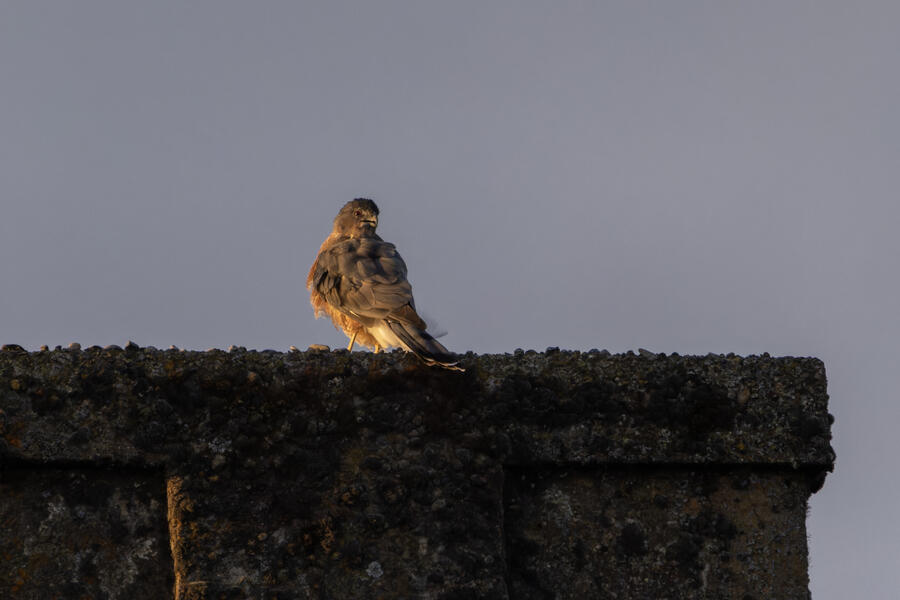 Thousands of Vaux's Swifts gather to roost in a local chimney every evening at dusk. I'm not sure whether this happens all summer or just in the fall. I don't know how I hadn't gone out to watch this before, but it was fun! It began a bit ominously because a Cooper's Hawk was already in position on the chimney when we arrived. After more than a half hour of a growing number of swifts circling overhead, it finally caught one and flew off. Once this daily sacrifice was complete, the mood lifted. A few minutes later the swifts began to swirl and pour into the chimney.