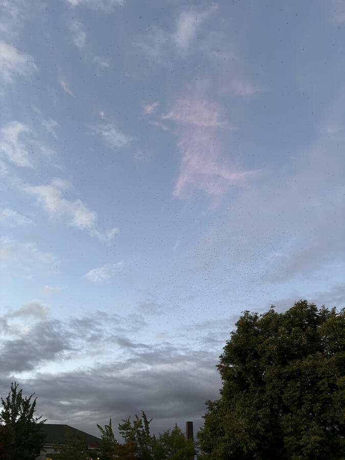 Counting the swifts was a challenge. I took a wide-angle photo with my iPhone of a particularly dense cloud of the birds, and I figure I got around half of the birds into the one photo. Using a bit of python code with the opencv library, I was able to count 4,900 birds in the photo. I'm intending to make a brief blog post about this since it may be useful for others.