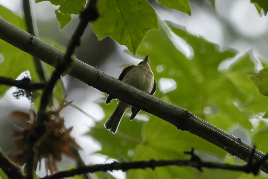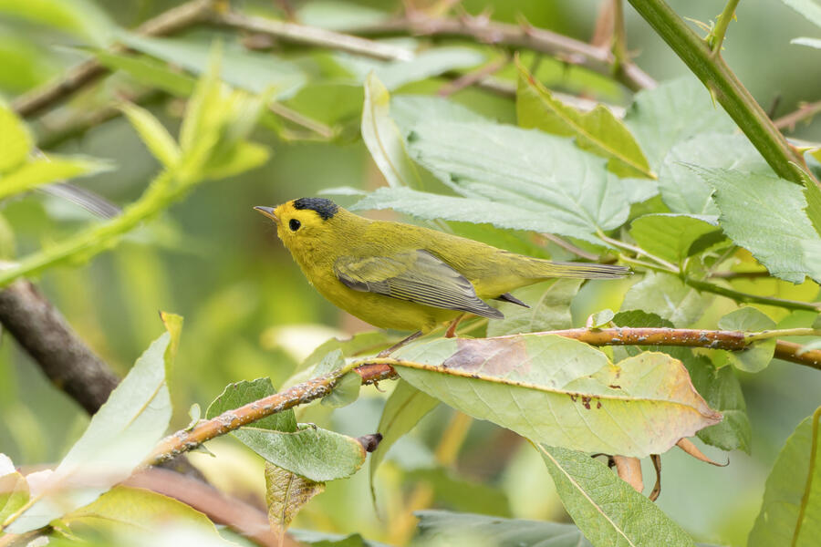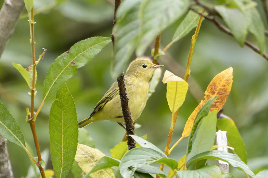 Yellow WarblerThis fall warbler was a bit cryptic for me. I was debating between Wilson's and Yellow, but for a Wilson's, the head seems too elongated, the bill isn't exactly right, the eye ring too pronounced, the tail too short, and not enough of a green wash to the back.