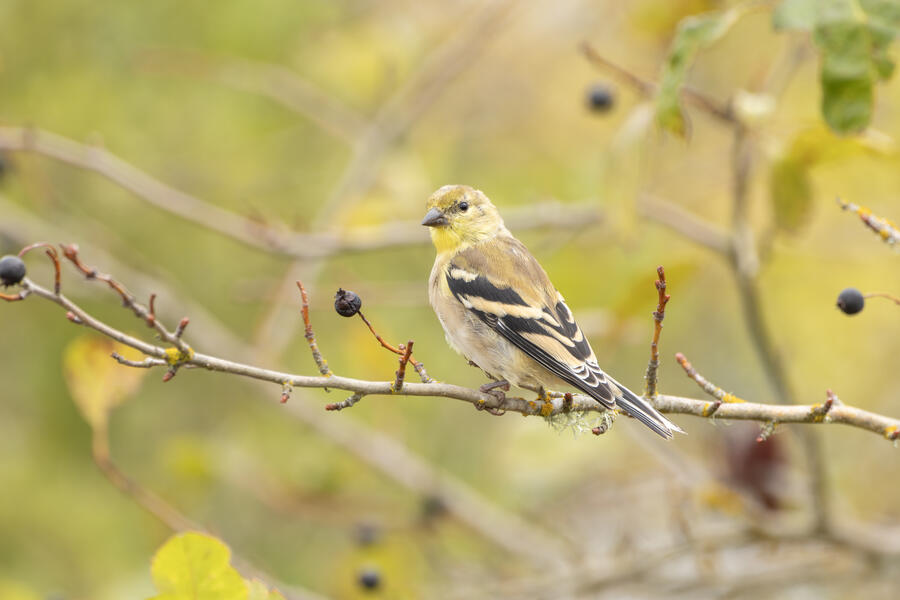American GoldfinchI used Photoshop's "generative fill" feature to paint over a large background branch sticking straight out of the bird's head. I needed more control than Lightroom's new generative erase feature provides because it replaced a bit of the top of the bird's head.