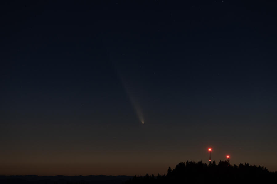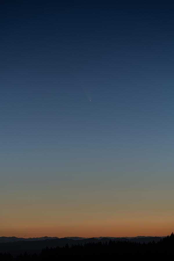 I was lucky to have clear skies on October 12th for viewing comet C/2023 A3 (Tsuchinshan–ATLAS). A ridge on the edge of town offers clear views to the west, and shortly after I arrived a few other folks showed up to see the comet. We had to wait quite a while to get a good view, around an hour after sunset! The comet wasn't terribly bright but it could still be found by eye. By the time the sky was starting to darken the comet was setting and was pretty dim. Most of the photos here are single exposures of a few seconds each.