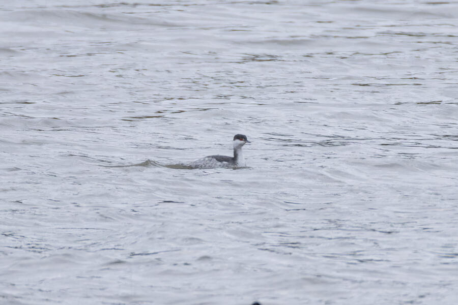 I thought there was a chance this was an Eared Grebe, since the bill looks a bit dark and small. The head shape doesn't look right though, so it's almost certainly a Horned Grebe.