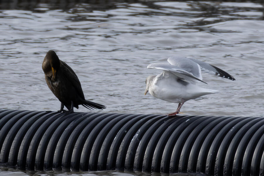 I was not expecting an American Herring Gull to be so large compared to a Cormorant!