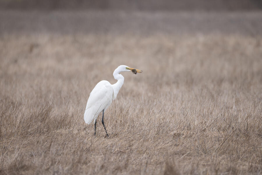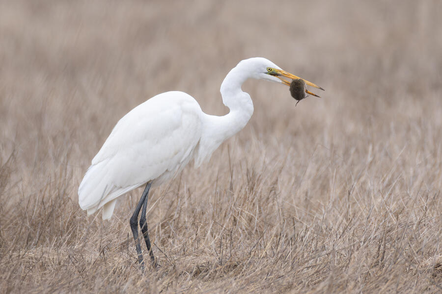 I also went out looking for Rough-legged Hawk a couple times. I came away with some shots of a Great Egret nabbing a rodent, possibly a pocket gopher, and also the Barn Owls. The Barn Owls were more easily viewed with binoculars. I don't expect to get better photos of one of those anytime soon.