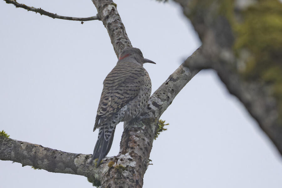 Northern Flicker (Yellow-shafted x Red-shafted)I thought this was a female Yellow-shafted Northern Flicker at first, but the red nape patch is a bit fuzzy. That, combined with the rarity of Yellow-shafted here, makes it seem more likely to be a Yellow/Red hybrid.