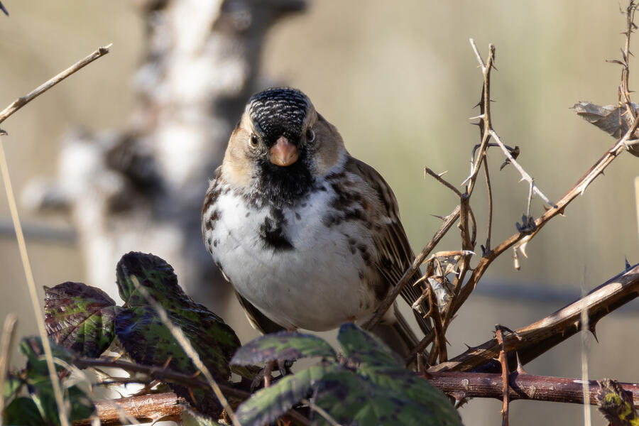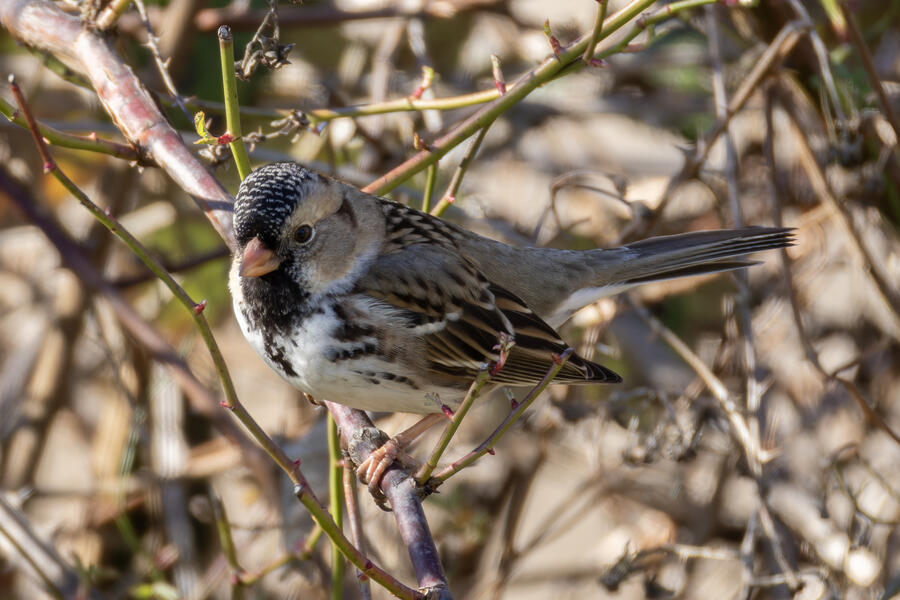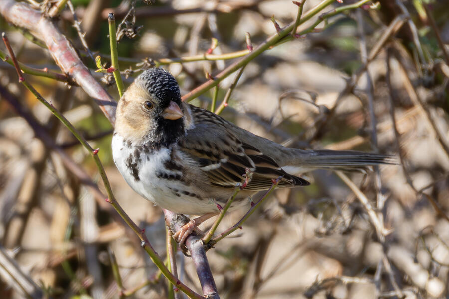 Harris's SparrowThis is a rare sparrow here, first found by a young local birder. I was able to briefly see it on my second visit here.