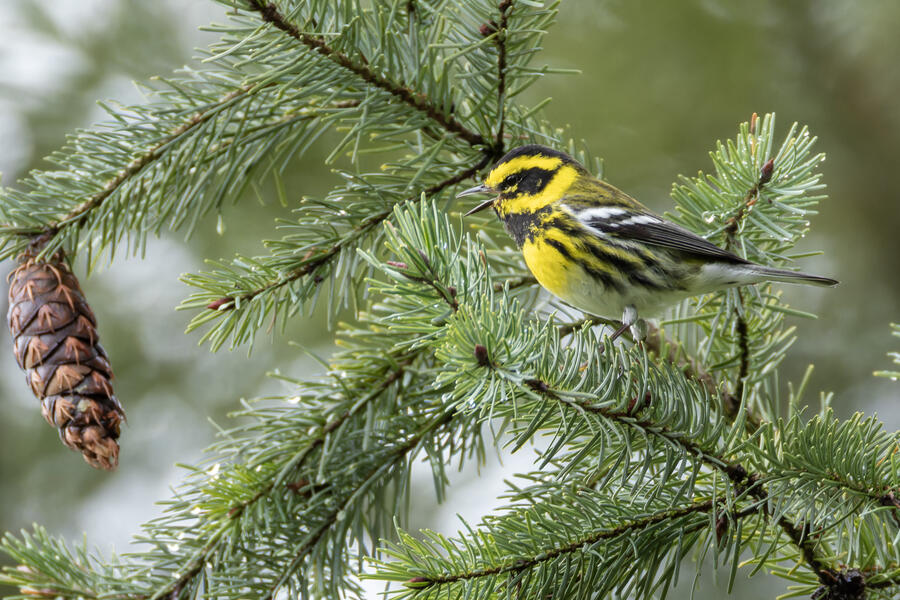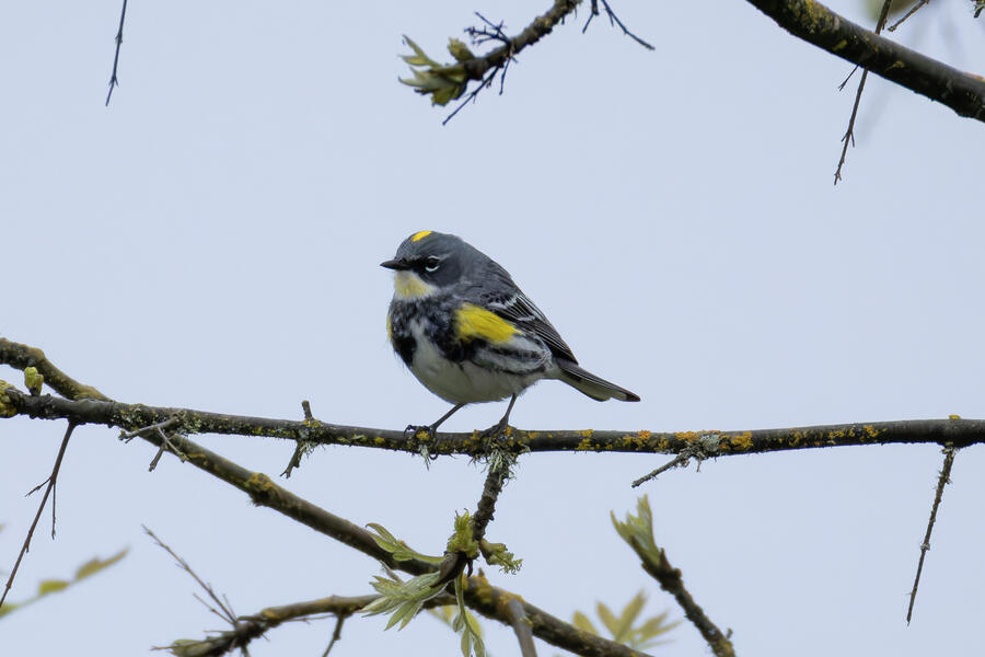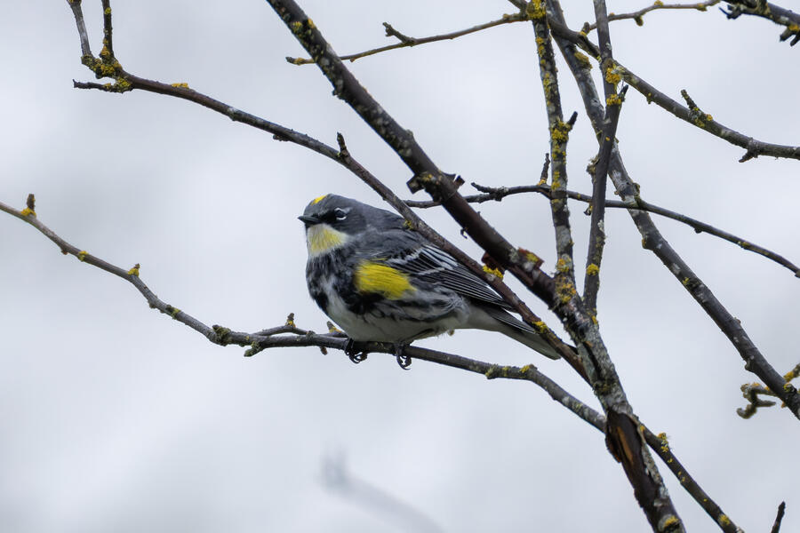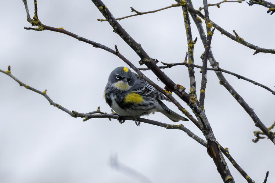 Yellow-rumped Warbler (Myrtle)This appears to be a male Myrtle Yellow-rumped Warbler, but doesn't have the expected distinct white eyebrow. It may have some Audobon's Yellow-rumped Warbler genes.