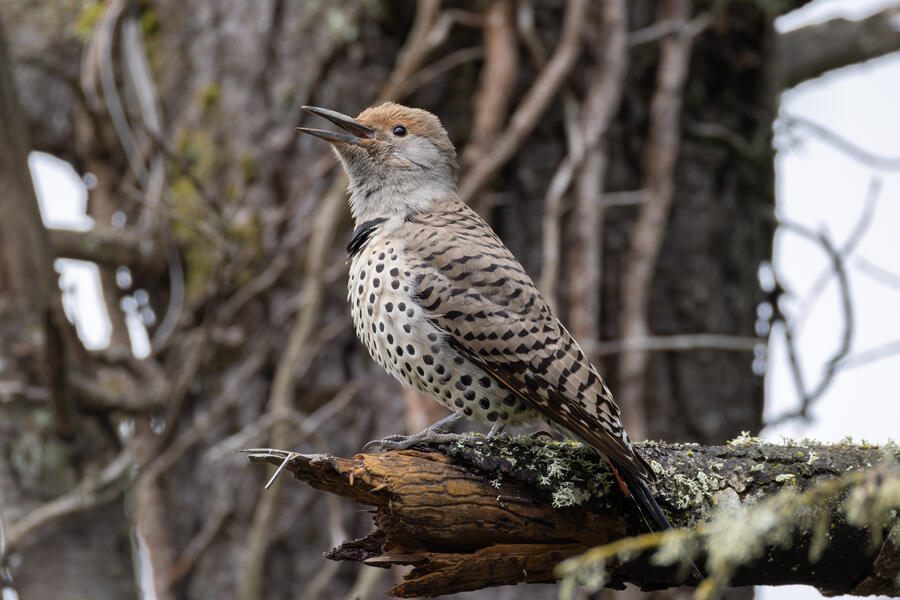 Northern Flicker (Red-shafted)I saw a pair of flickers and what I presumed was a tree with a nest cavity. This female was calling/singing from a branch near the nest hole.