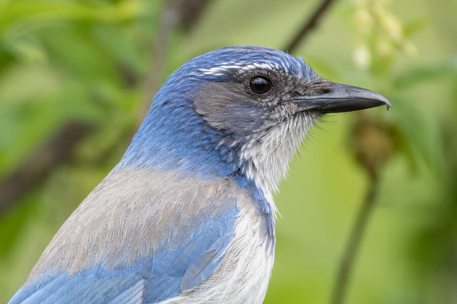 California Scrub-JayI used Lightroom Classic's generative remove feature to paint over a bit of grass stuck to the far side of the bird's bill.