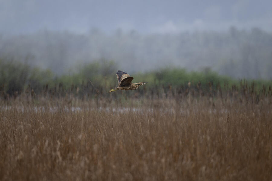 American BitternI used Lightroom Classic's generative remove feature to paint over a distracting stick ahead of the bird. I kept this photo a bit dark to highlight the rain visible in the shot.