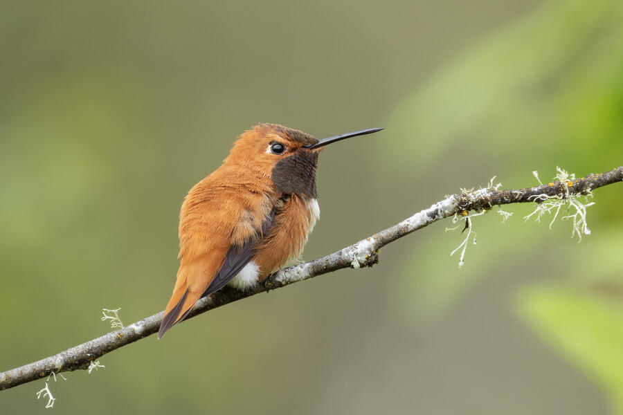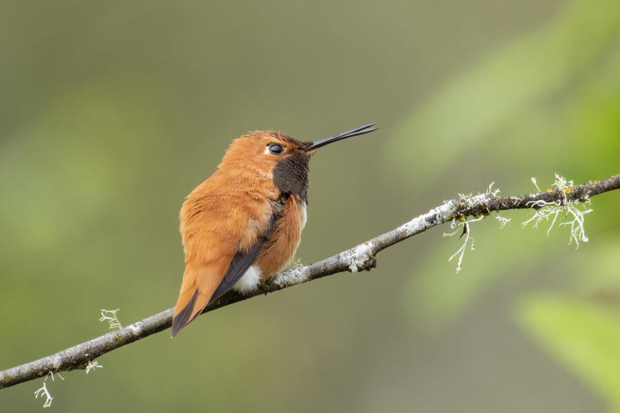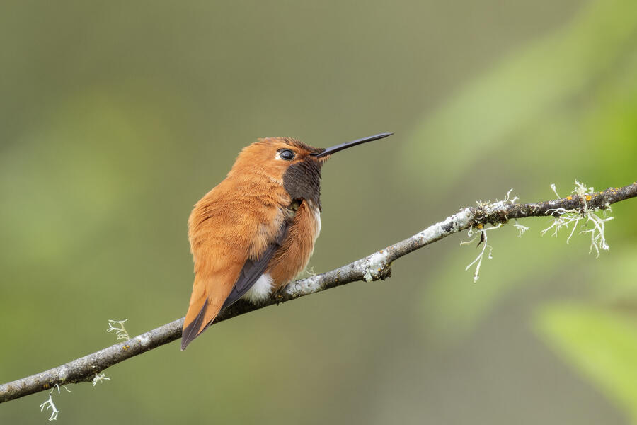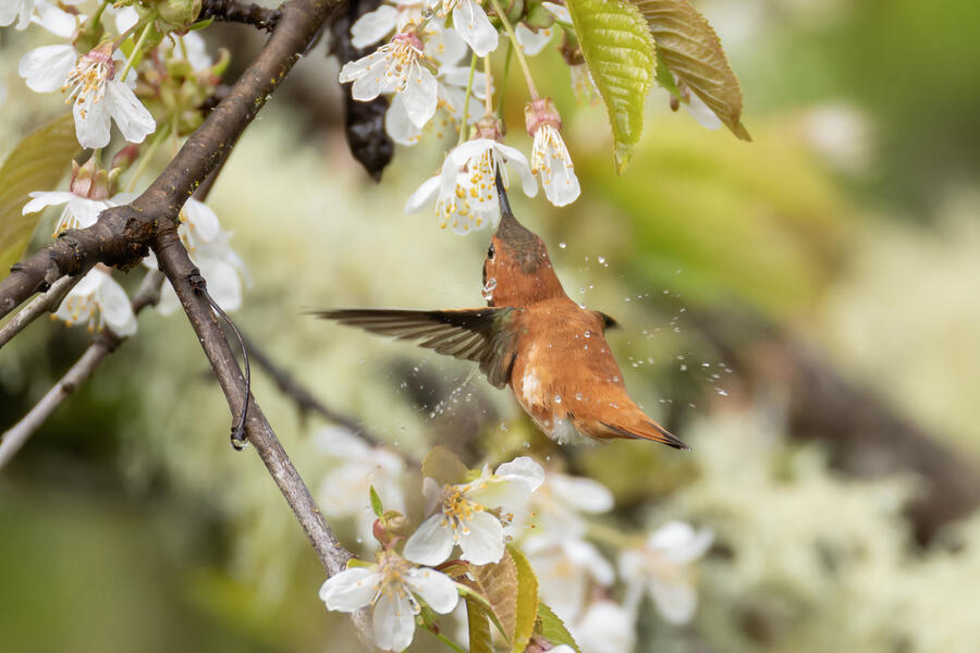 Rufous HummingbirdThis shot shows the pair of tail feathers with "notched" ends, which is the only way to tell a Rufous from an Allen's. All the male orange hummingbirds here are assumed to be Rufous, but I wonder how often Allen's Hummingbirds go unnoticed in this part of Oregon.
