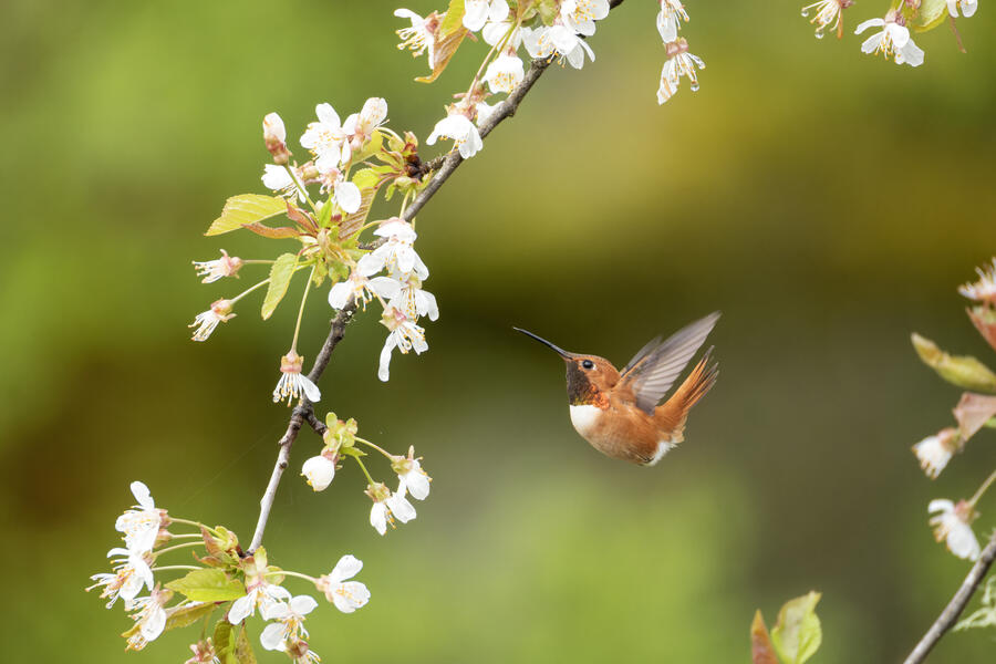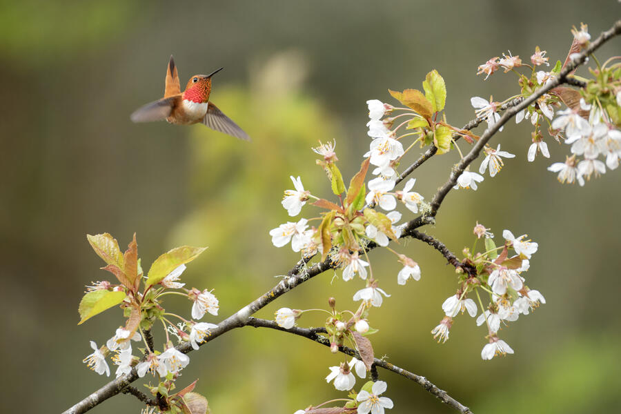 Some spring migrants have started to trickle into the area here in western Oregon. Migration season will get more busy here over the next few weeks, but I found plenty of birds to photograph here in the meantime. Some of my favorites below include my first-of-year Rufous Hummingbird, a pair of Chipping Sparrows among some blossoms, and a pair of Wood Ducks up in a tree.