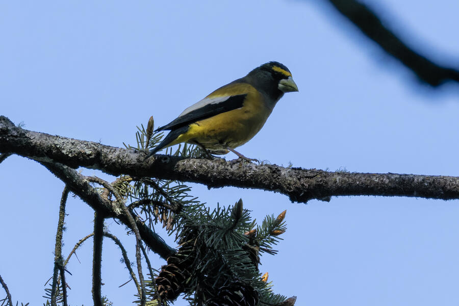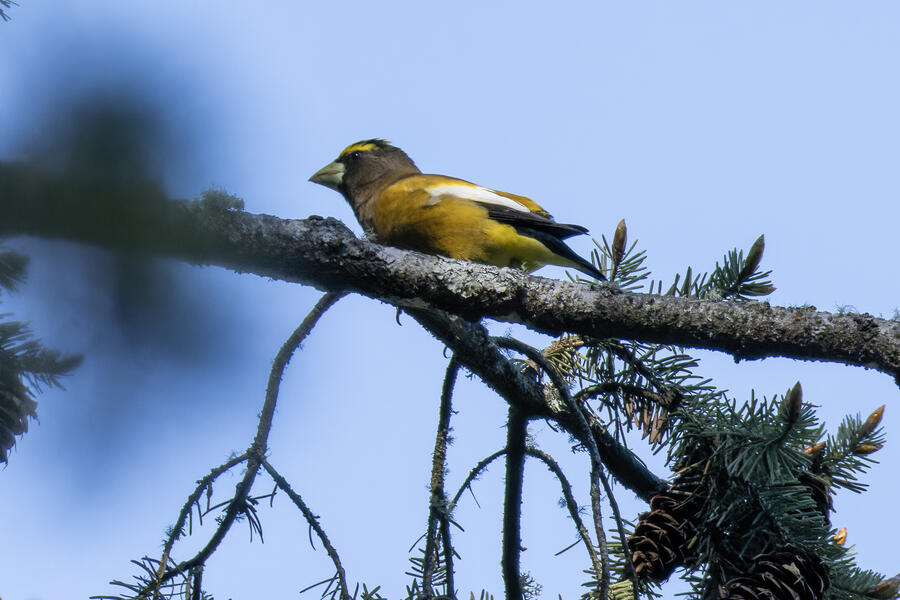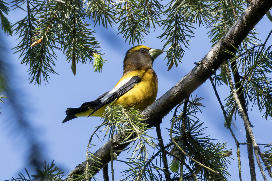 Evening Grosbeak, Double-crested CormorantA good shot of an Evening Grosbeak still eludes me, but on this occasion some visited our yard and a couple of them were actually visible in the trees overhead for a few seconds at a time.