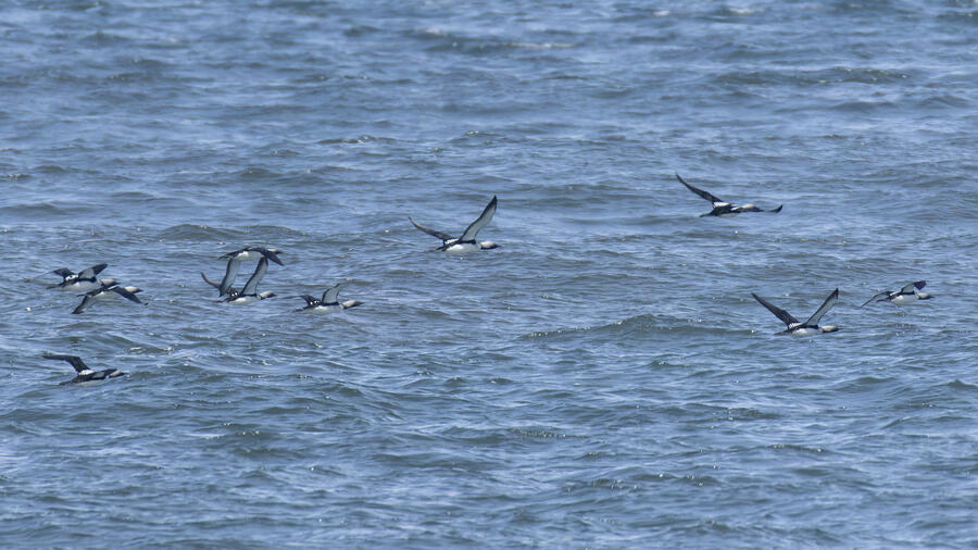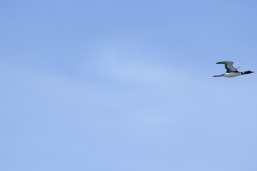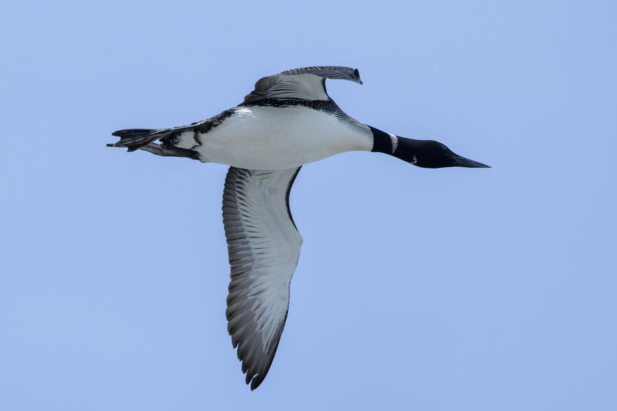 Pacific LoonI don't think I'd seen Pacific Loons in their breeding plumage before. Lots of little groups of 20-30 of them were headed north, flying low over the water. I'm not sure if they migrate during the day, or at such a low altitude, but for what it's worth ChatGPT says they were likely migrating.