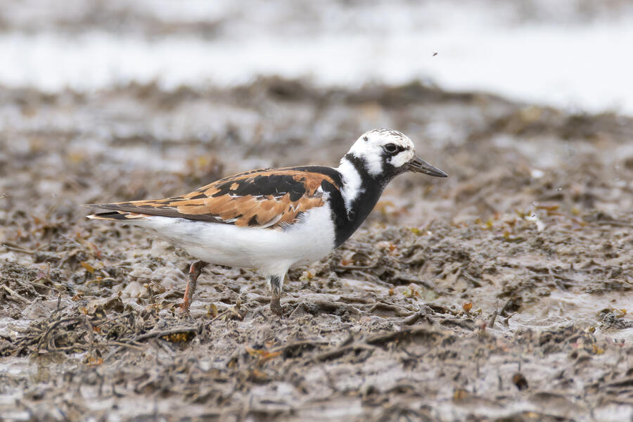 A few days ago, first thing in the morning, I got yard bird #75: Olive-sided Flycatcher. It was far away, but I count any bird I can see or hear from my yard as a yard bird. I was fortunate the bird didn't fly off while I hurried to grab my camera. After looking at the photos, I thought it might have been my first yard-photographed Western Wood-Pewee, but there's enough contrast between the dark and light areas of the "vest" appearance that I'm pretty sure it was an Olive-sided Flycatcher. A little while later that day, I saw an eBird notification of a nearby rare Ruddy Turnstone. These birds are pretty rare here on the coast, where they are normally found, and even more infrequent inland here. I got a chance to go looking for it in the early evening, and again I was luckily able to easily find and photograph the bird. A great and easy lifer! Even while being somewhat careful with the shutter button, I shot over 1,500 frames of the bird! It took a lot of work to go through them all to pick out the best ones. None of the photos came out super sharp, and the background/environment in the photos isn't terribly photogenic, but it was terrific to get a chance to see and photograph this cooperative bird.