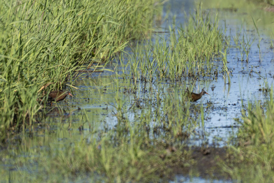 Virginia RailI saw a juvenile Virginia Rail in the distance (an entirely black fuzz ball with awkward big long legs) but it ran into the reeds before I could get close enough for a shot. There was so much heat shimmer that I wouldn't have been able to get a good shot anyway. I did end up with a few bad shots of adult Virginia Rails.