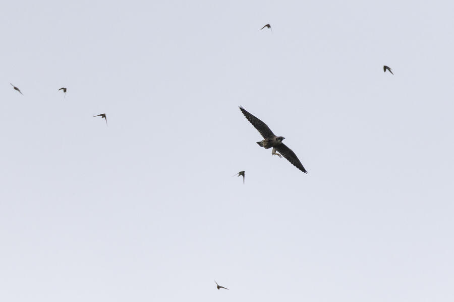 Peregrine Falcon, Barn SwallowI guess this Peregrine was considering going after a swallow in mid-air. That would have been something to see!