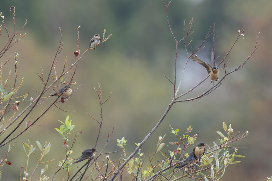 Bank Swallow, Barn SwallowI took a few shots of a Peregrine Falcon floating among a loose flock of feeding swallows, and noticed I got my first ever photos of a Bank Swallow!